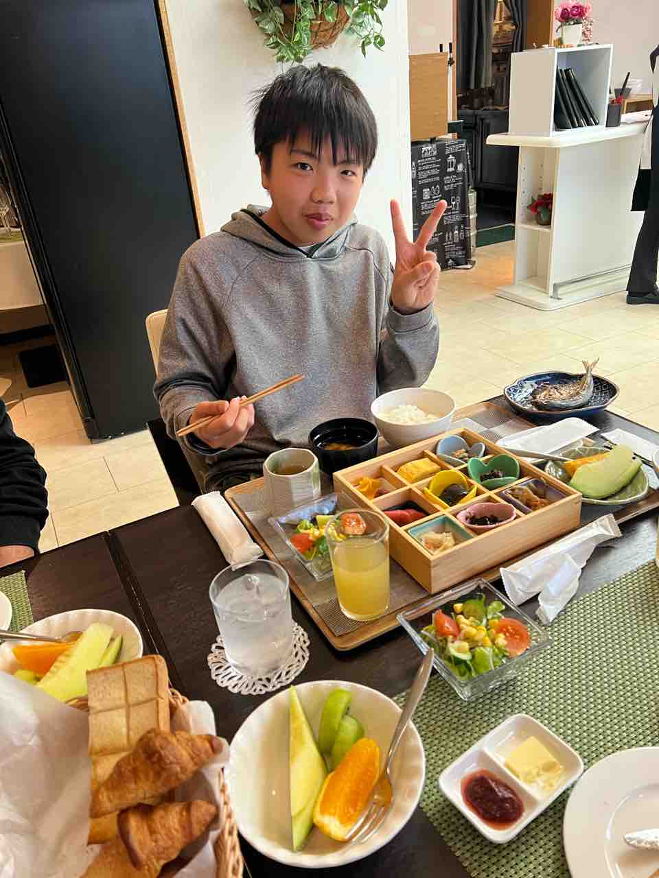 ご飯派のルネ兄は和食。大人達は洋食に