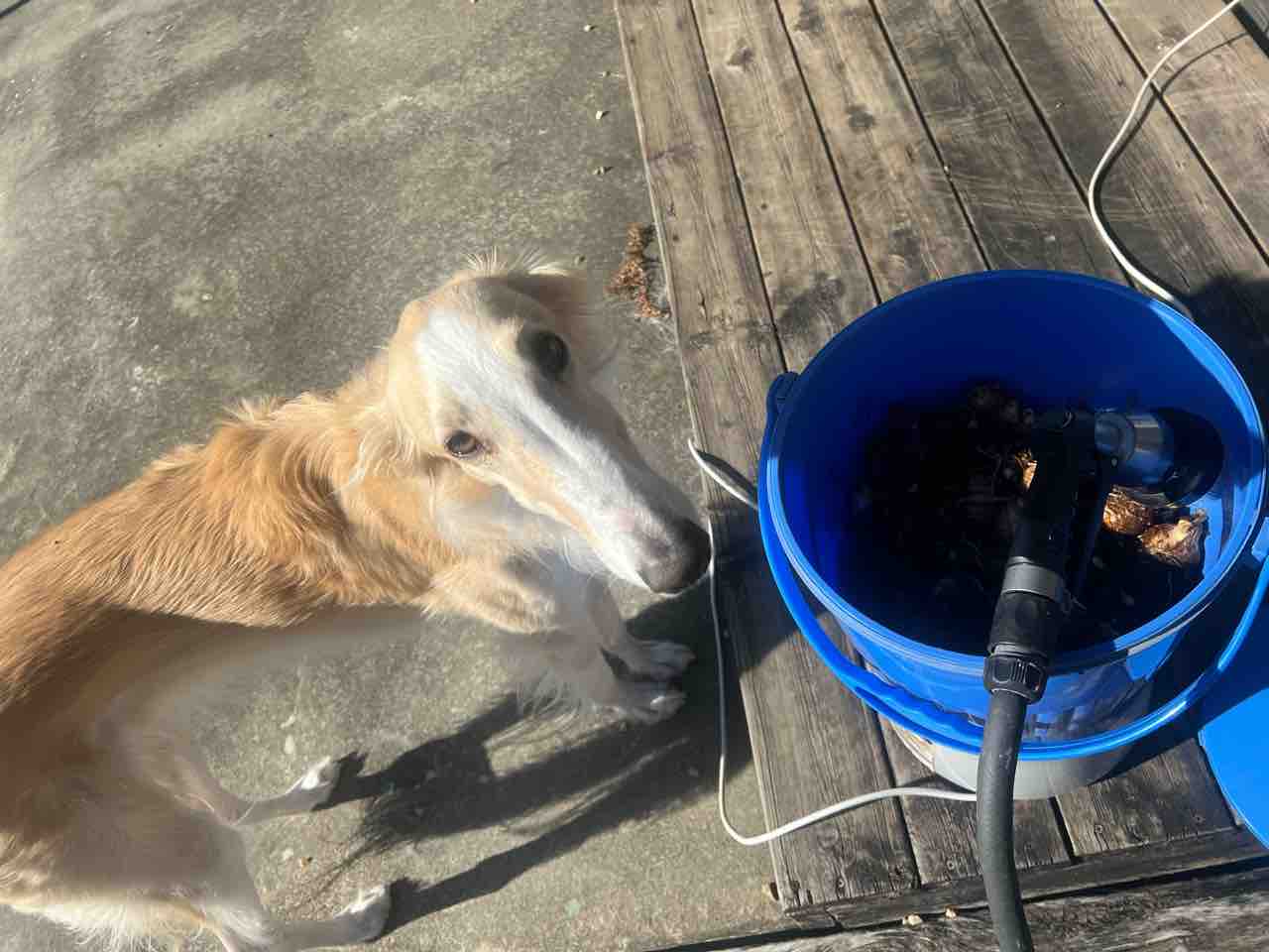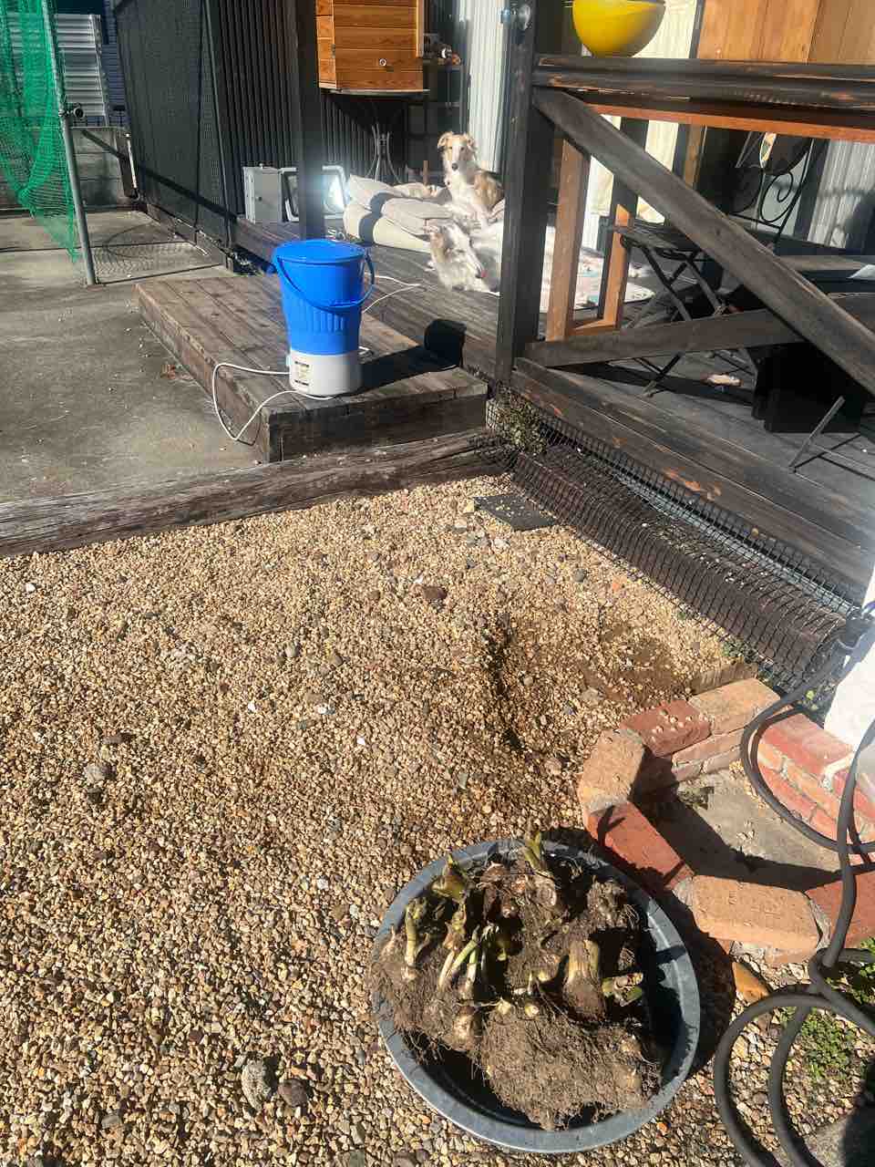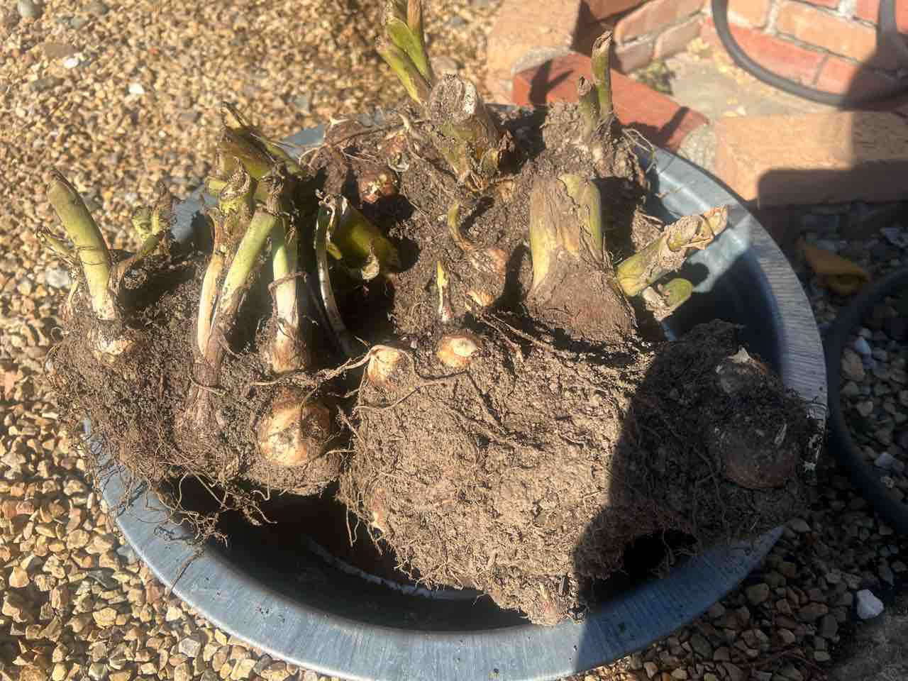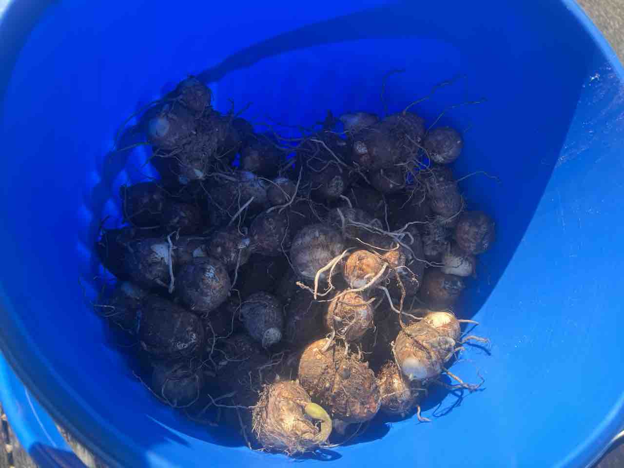 親芋から切り離し、ある程度土を取って洗濯バケツに