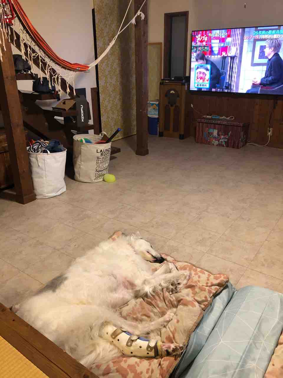 左脚を下にしたまま完全に就寝してしまったので、脚の確認とレッグウォーマー交換出来ず