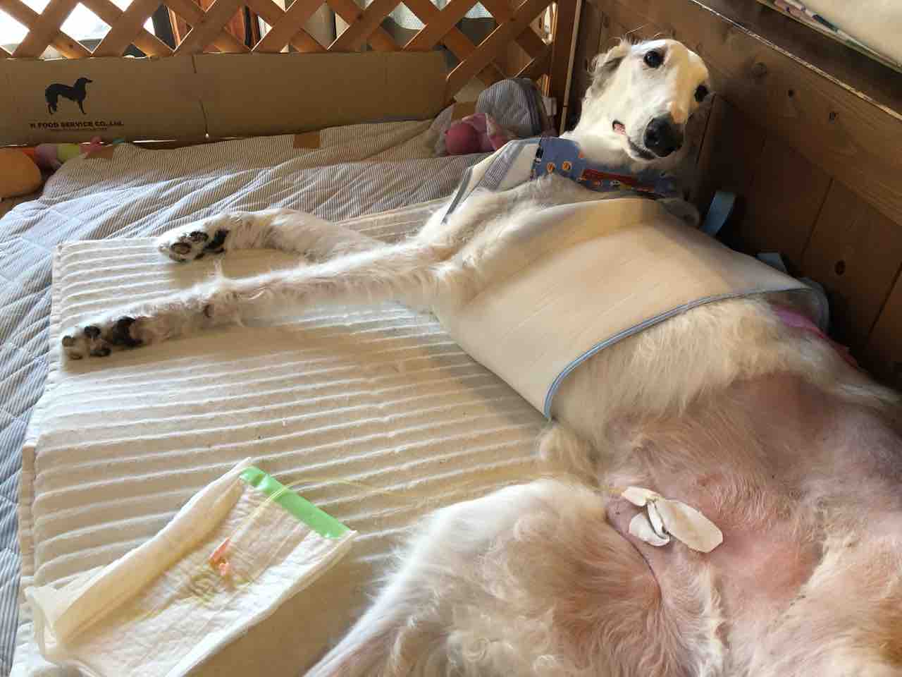 の院長先生から電話があり、日曜診察だけの予定でしたが、レントゲン撮って調子が良ければそのまま入院して月曜に右前脚の断脚手術をすることになりました。