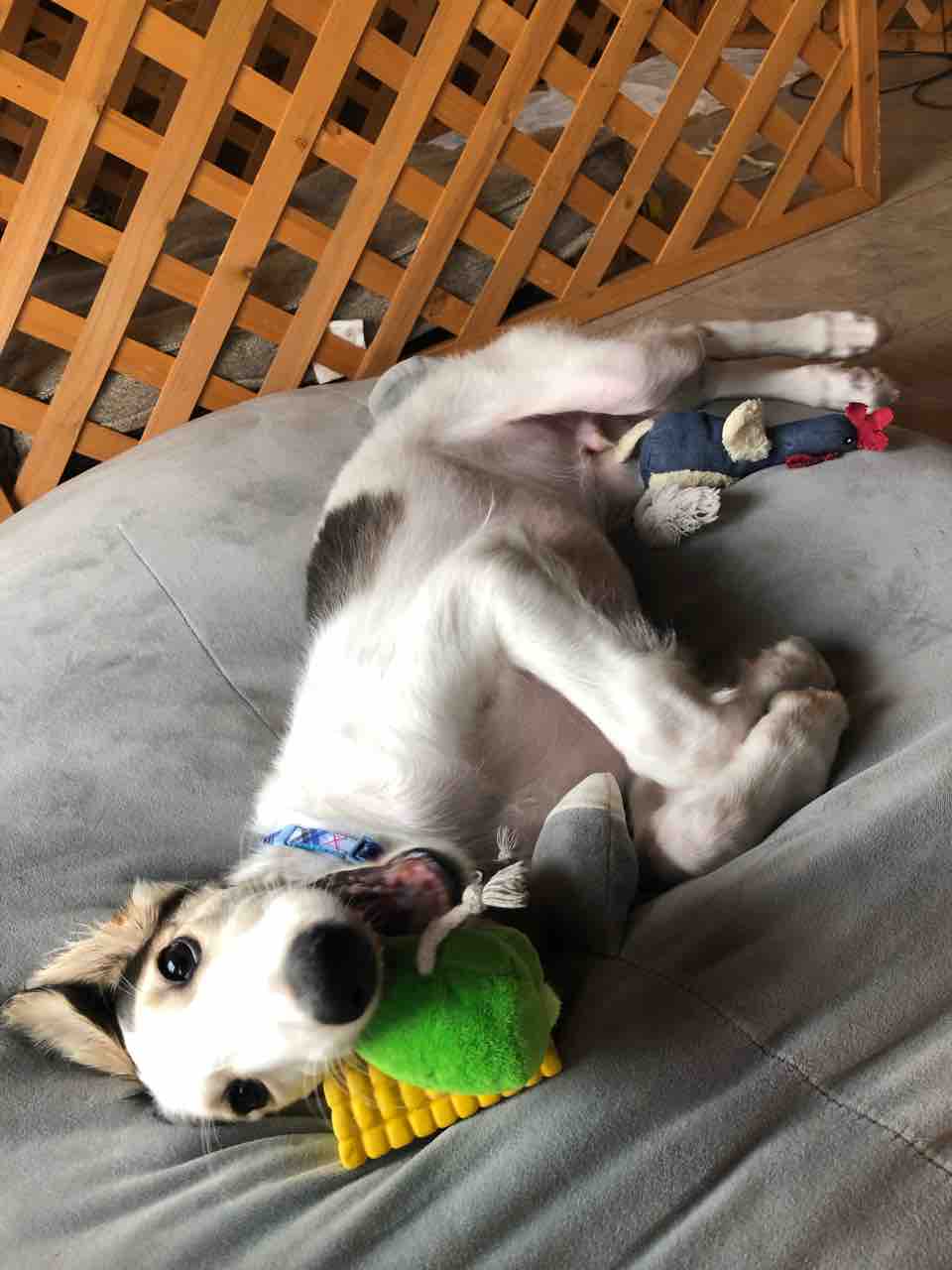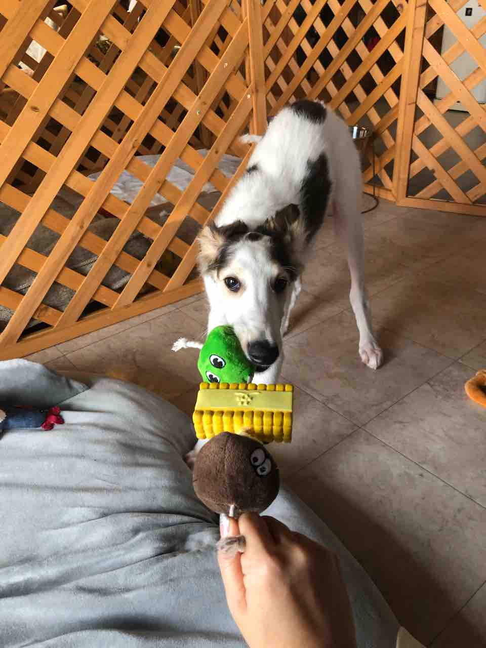 2022年06月20日 3ヶ月+10日で11kg!! 今日のターボ午前中母ちゃん仕事に出てたけど、ターボお利口にお留守番出来ましたお昼ご飯食べてから、母ちゃんと遊びます(ターボ今1日3食)なんちゅー可愛さ中に入ってるオモチャを取り出したい…顔が、、、「巻き寿司オモチャ、1個出せたよ」夕方お庭へフリーにしてみました走り回ることなくウロウロしただけオシッコ出来たよ外で遊んでたら…大好きな兄ちゃんが帰ってきたーーー急いで家に入りました