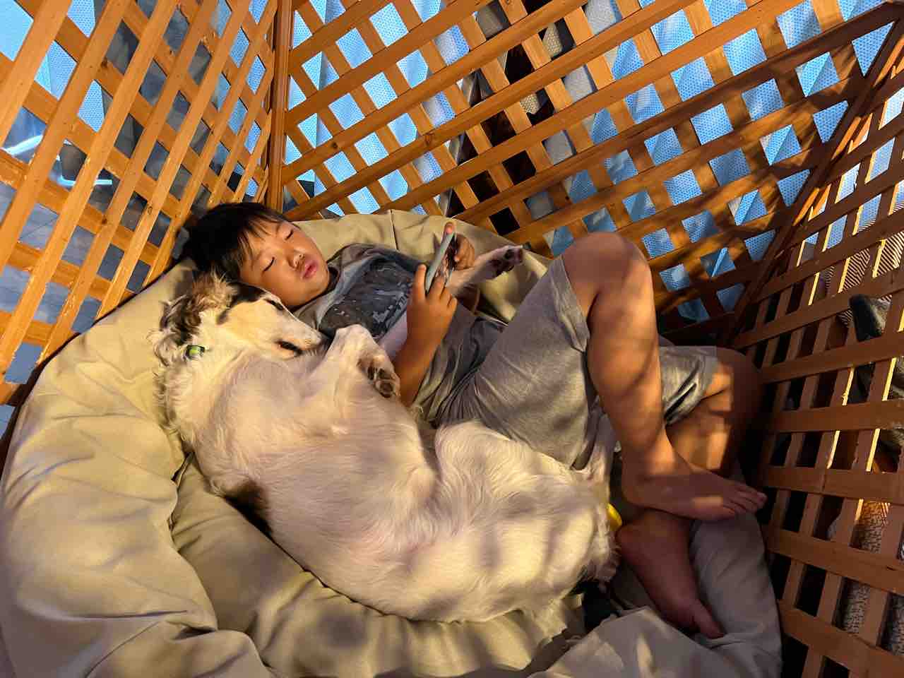 兄ちゃんの準備待ちしてる間に朝散歩へ