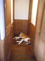 前廊下のひんやり冷たいフローリングが大好き