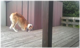 朝散歩から帰ってきたブッチ