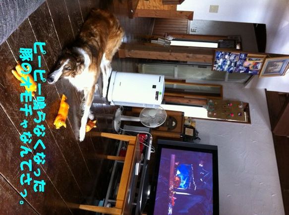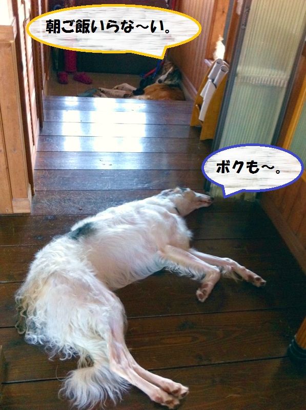 朝と夜もあんまり出なくなってきて・・・エアコン効いてるリビングで走り回る2頭