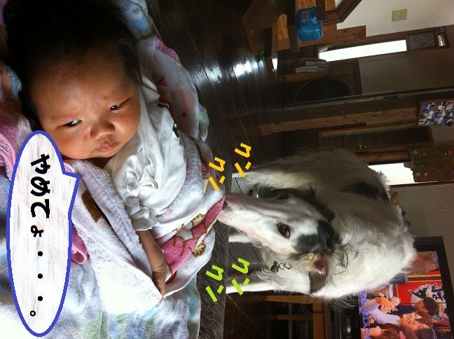 の1ヶ月検診だから、バリケンでお留守番しててね~