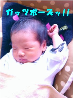 寝ながらのガッツポーズ
