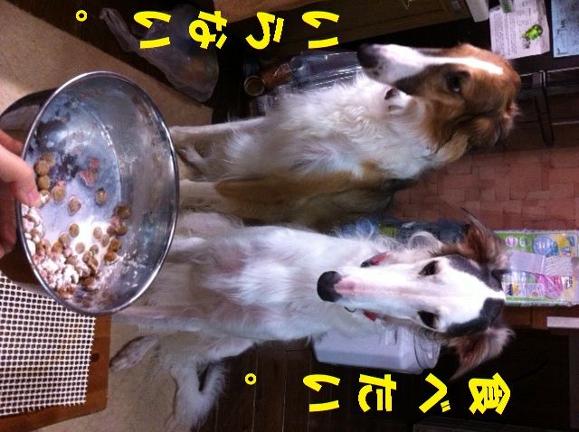 バジルが食べたそうにしてるのは、ブッチが残したご飯