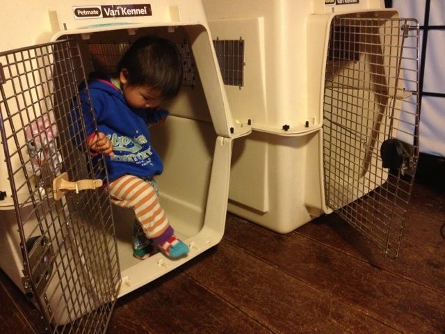 ルネはワンズ達に相手にされず、、、バリケンへ入ったり出たり、一人で遊んでます