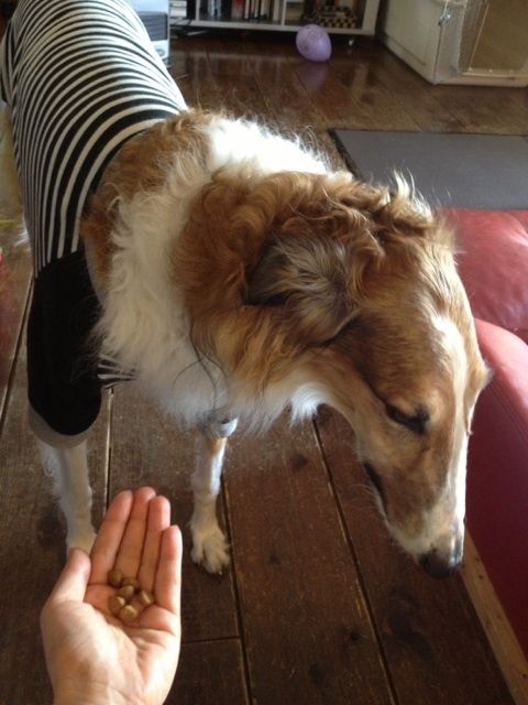 病院でもらった消化器サポートフードがまだ残ってるので、ブッチは2割バジルは8割そのフードにしたんだけど