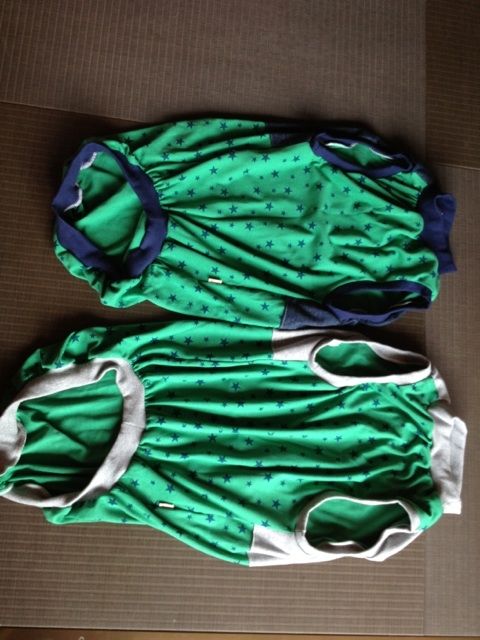 2頭お揃いっぽく作ってほしいとお願いしたところ、こんなに可愛い服が届きました