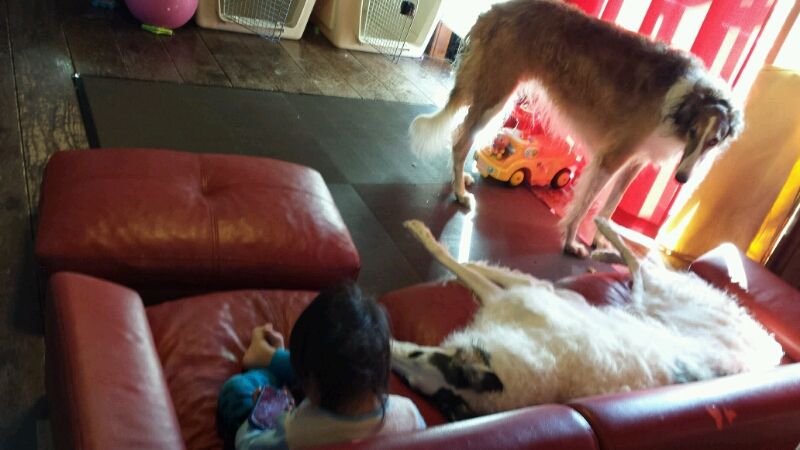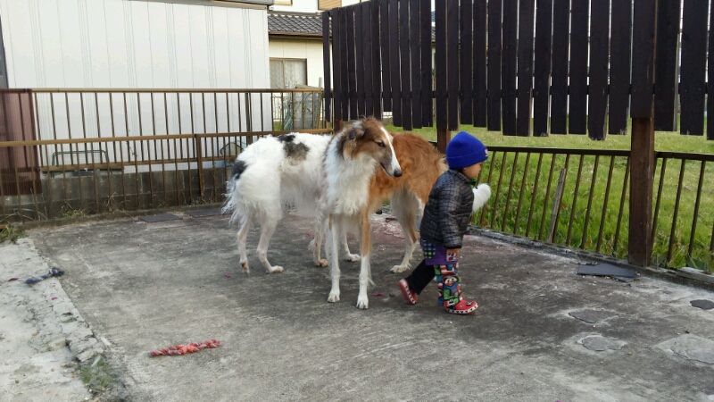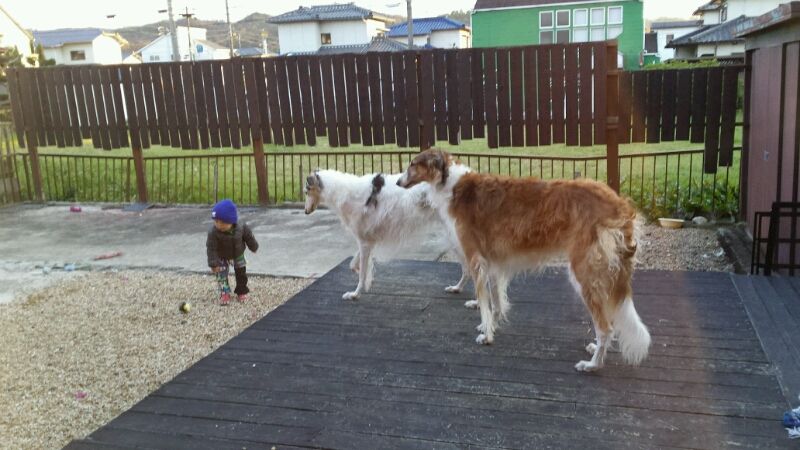 2013年11月29日 元気なのはボクちゃんだけですよヽ( ̄▽ ̄)ノ 今日の夕方 ジャンパー着て準備万端のルネ 外で遊ぼうぜぇーーーっと、誘ってます 付き合ってあげますか~ と、、、出てきたものの 動いているのはルネだけ 寒さに強いな、、、子供って あれっ???ボルゾイも寒さに強いはずですょね?! ブッチ兄さん座り込みました ルネまで、、、 子供元気さには全く勝てないボル達でした ブログランキングに参加しています ↓下の画像ほポチっとワンクリック よろしくお願いします にほんブログ村 にほんブログ村 ポチっと♪ありがとうございました