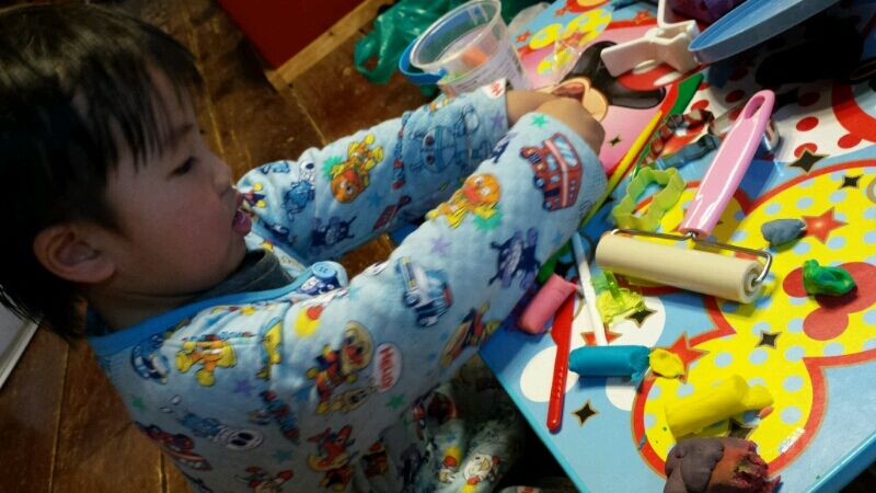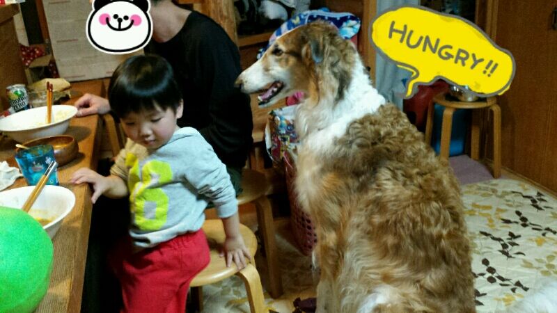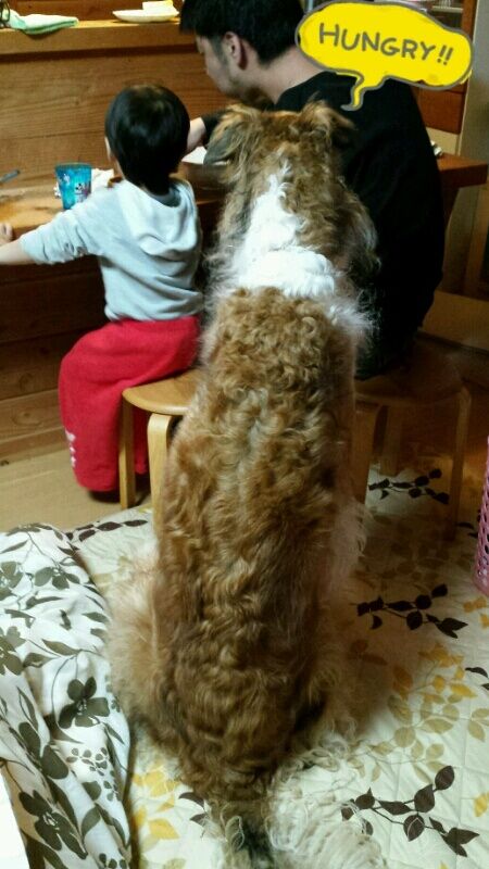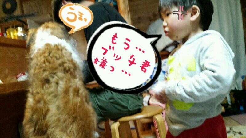 ちょっと席を外した隙に、ブッチ兄さんに父ちゃんをとられてヤキモチを焼くルネ坊主