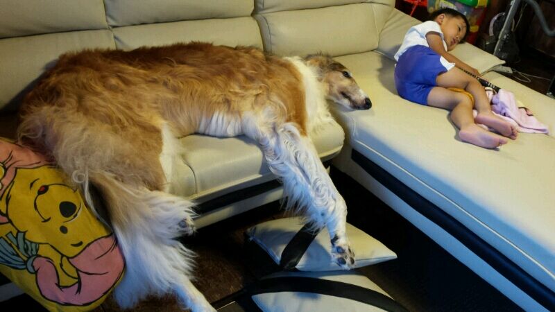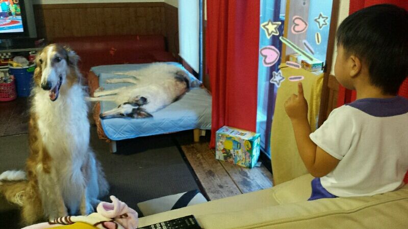 子供に『オスワリ!』と言われて素直に座るブッチ兄さん