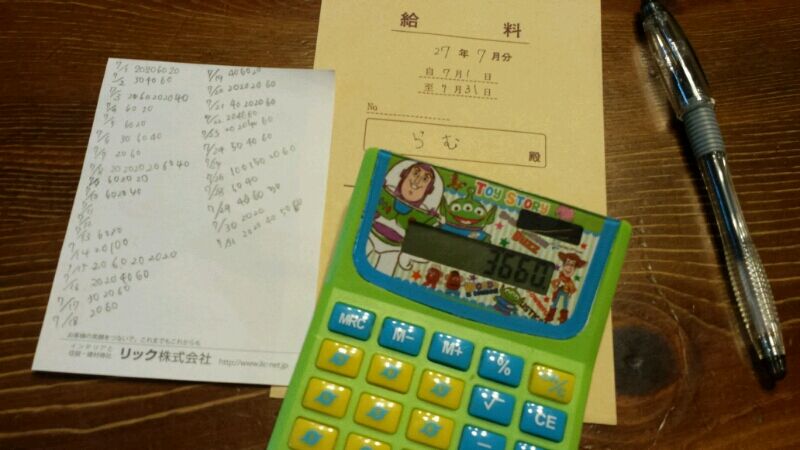 月末なので、姉ちゃんの給料(お小遣い)も集計