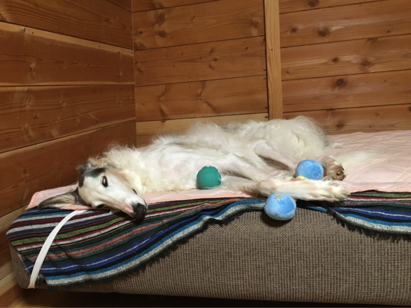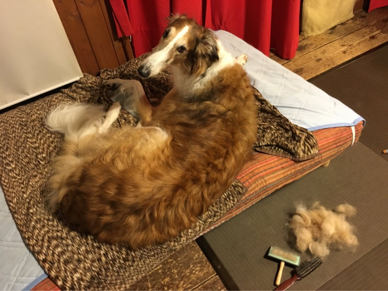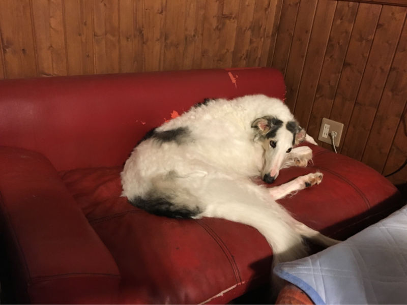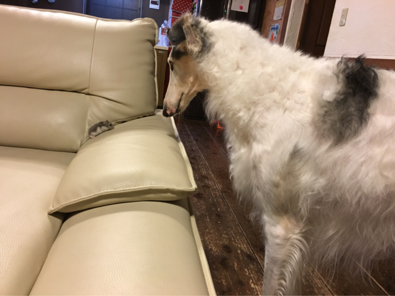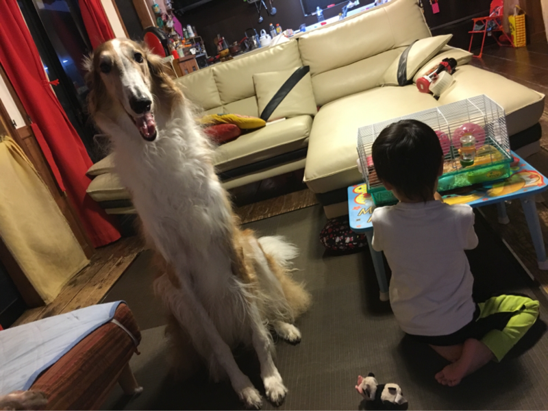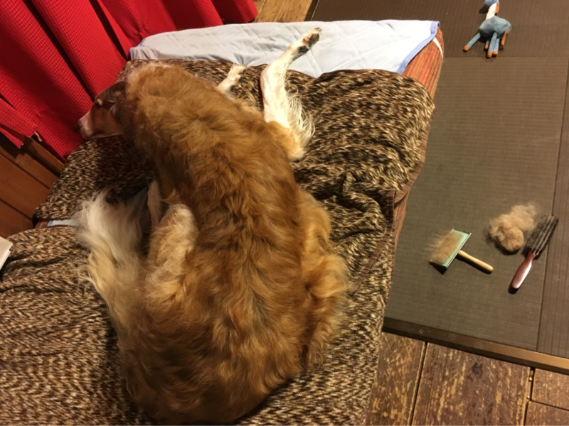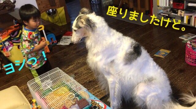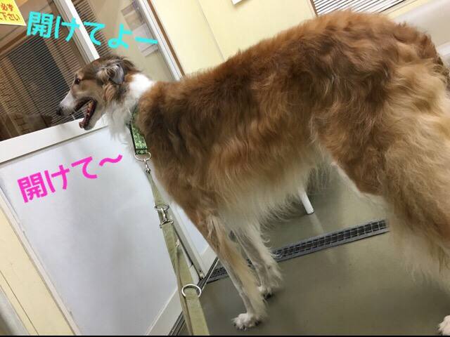 私の膝の上に座ったり...出口の方へ向かったり...ソワソワ