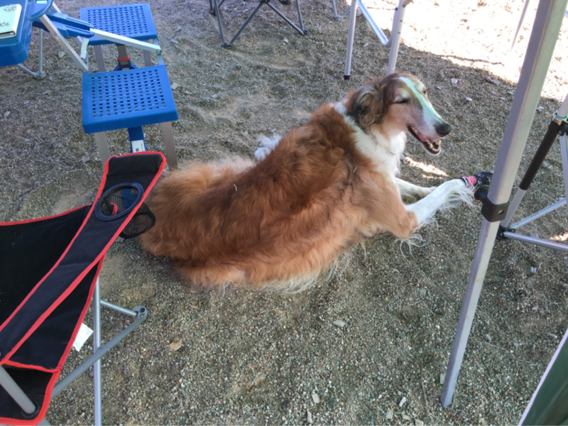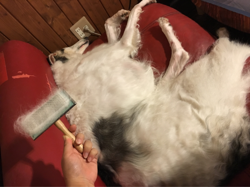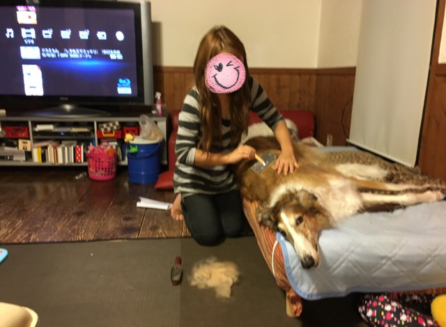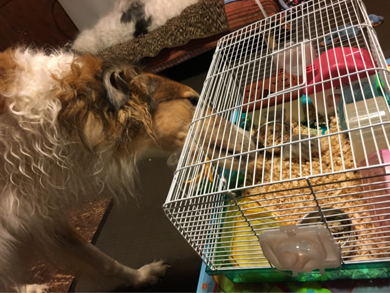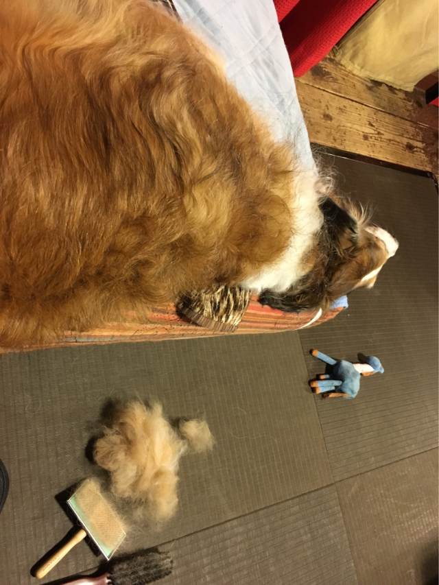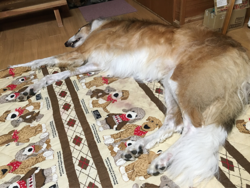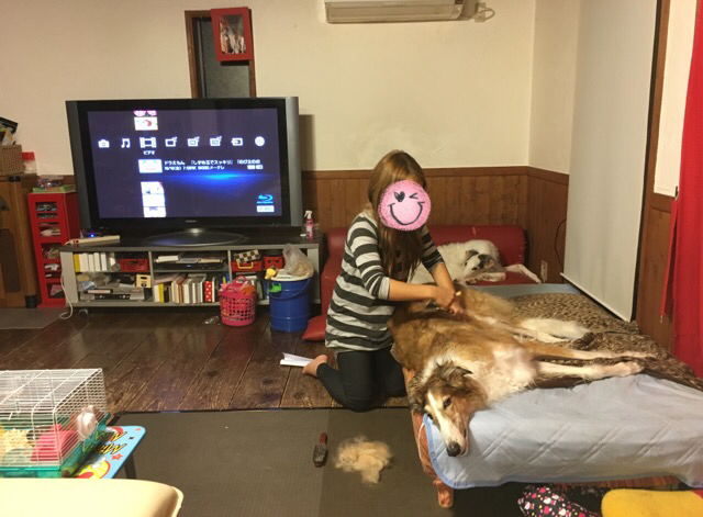 私の膝の上に座ったり...出口の方へ向かったり...ソワソワ