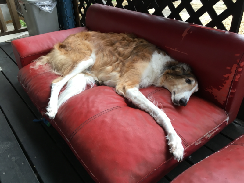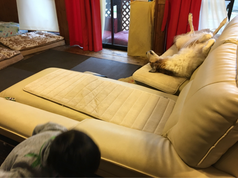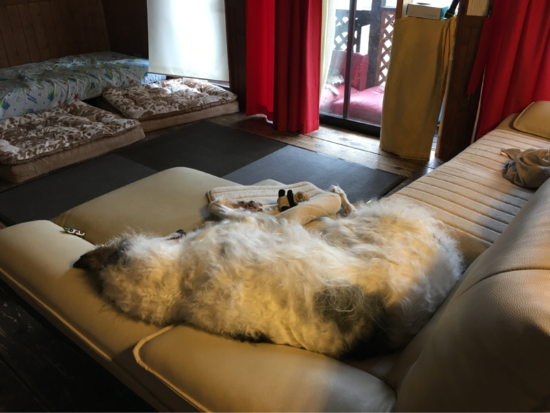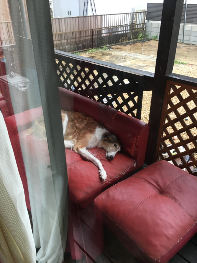 ブッチ兄さんは外のソファーで