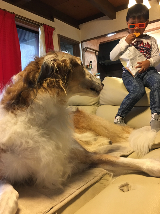 兄さんはポテチ食べるルネ坊主を見てる