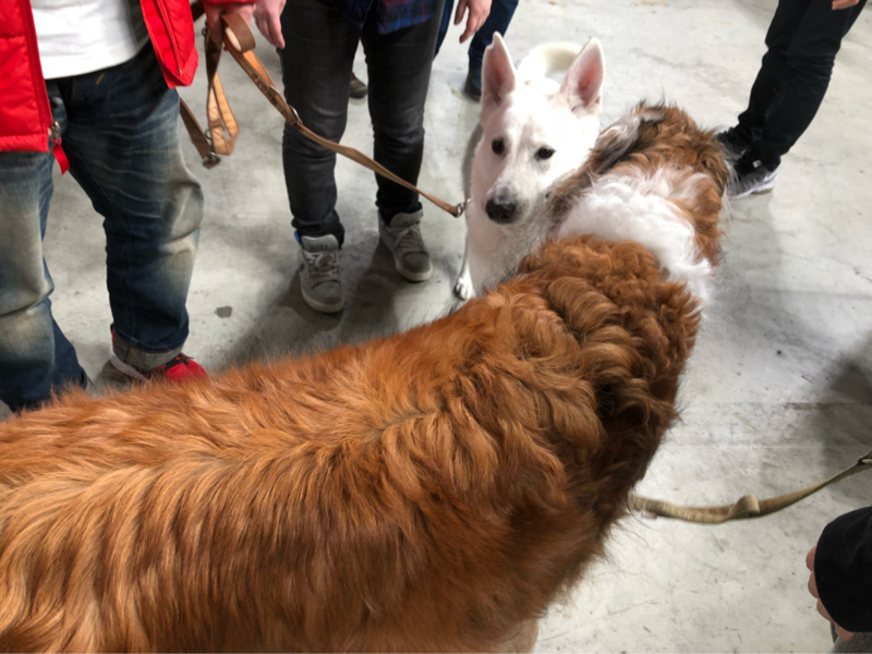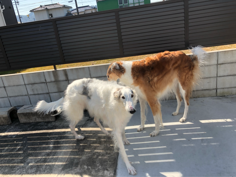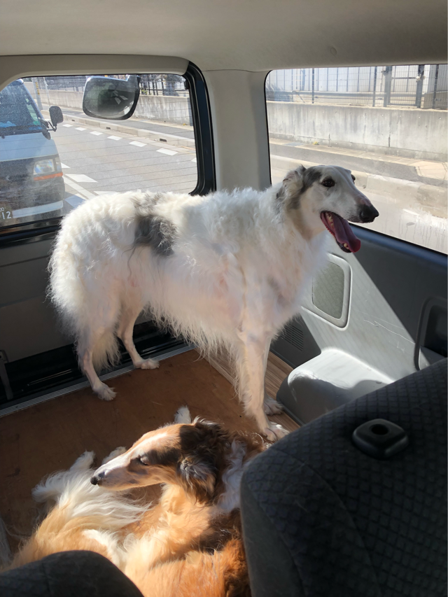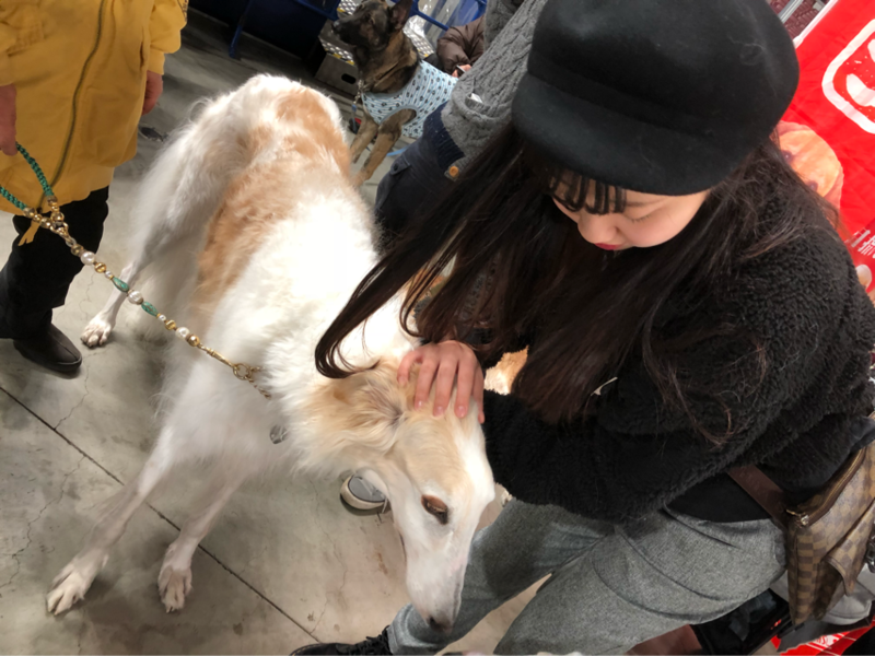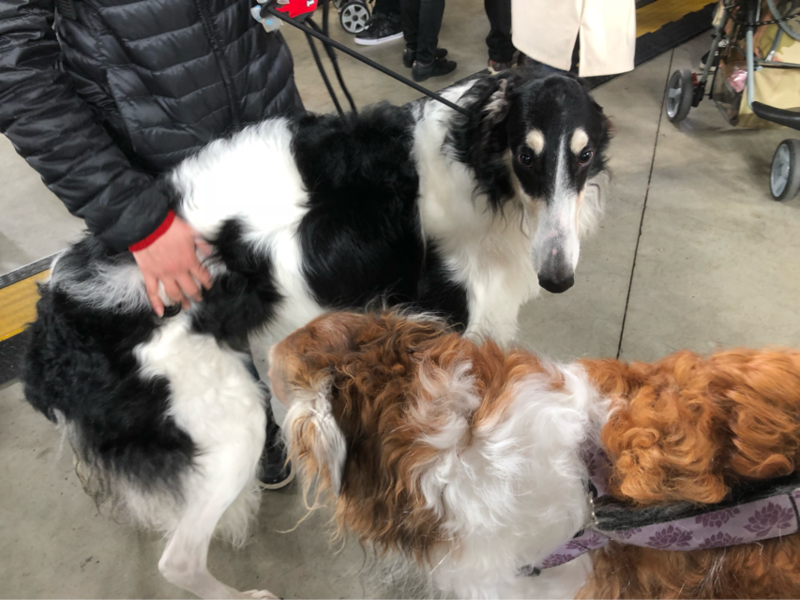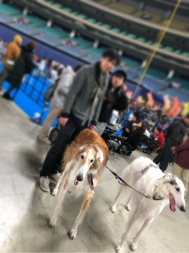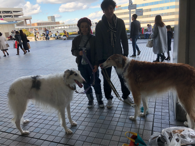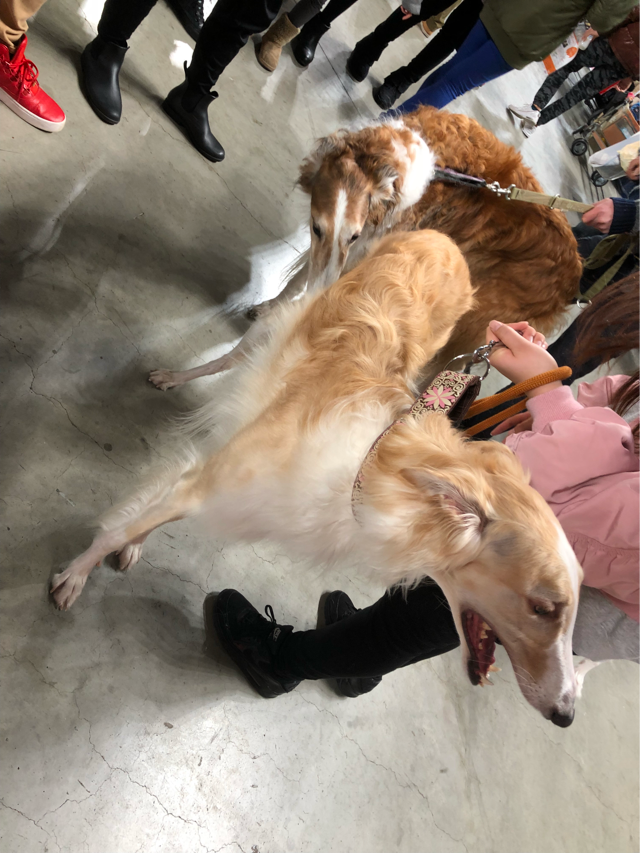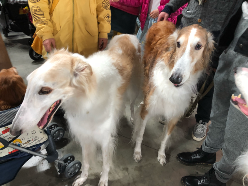 が付き合ってくれました。沢山ワンコがいる中、やっぱり気になるのはボルゾイ