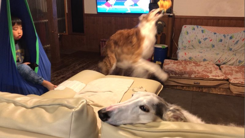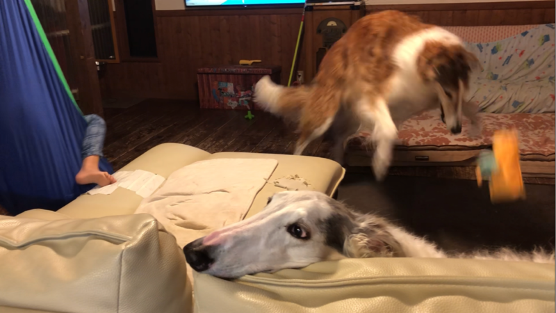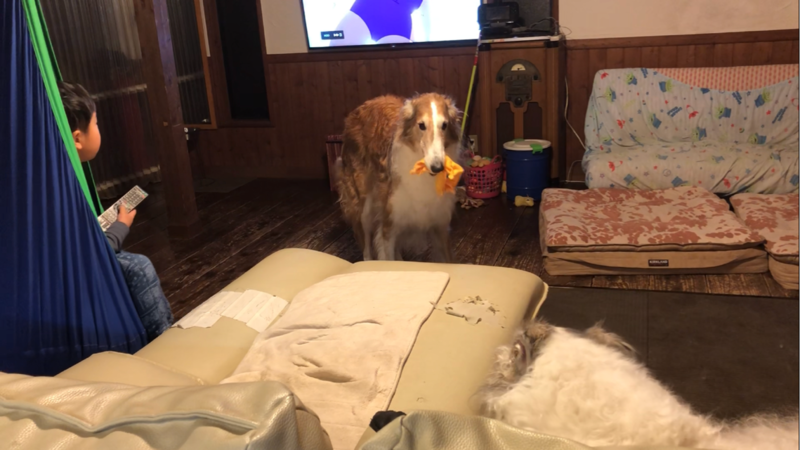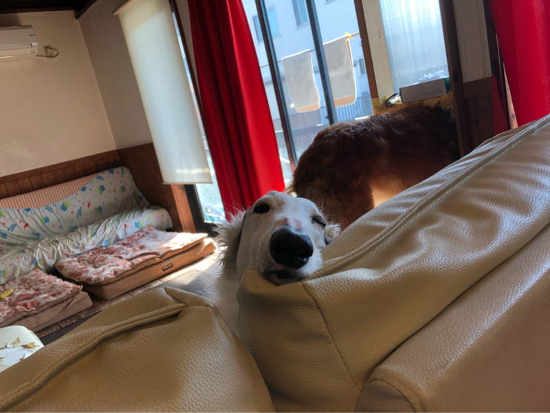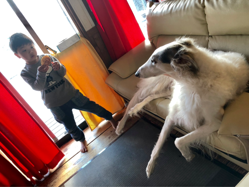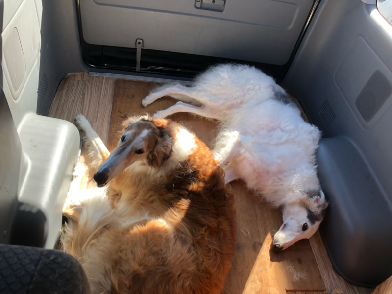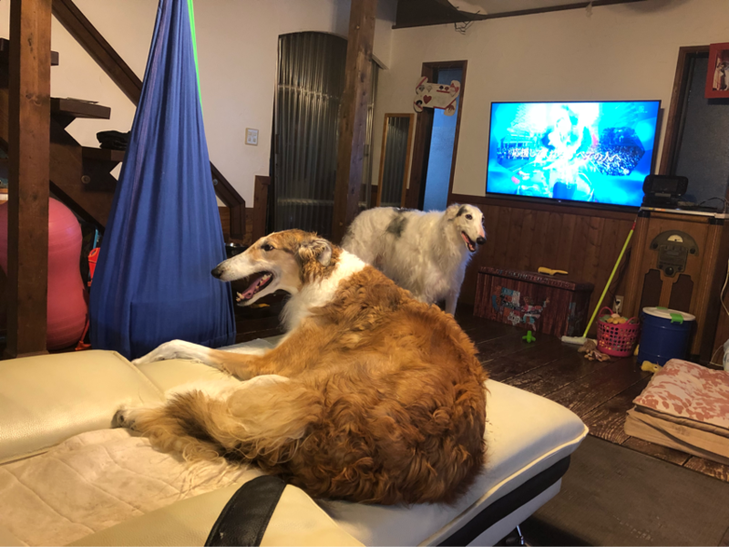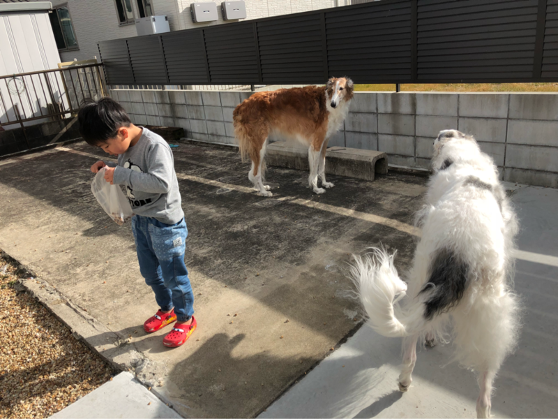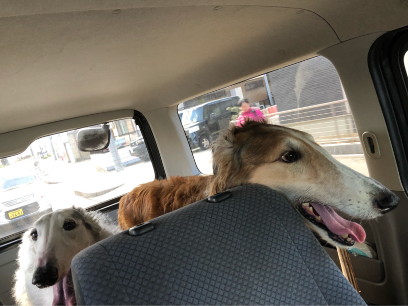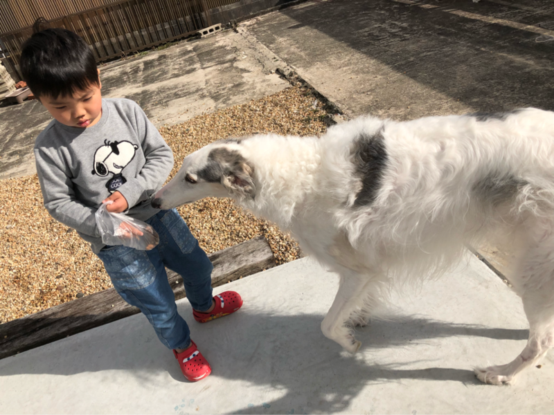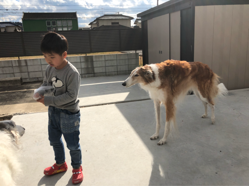 が付き合ってくれました。沢山ワンコがいる中、やっぱり気になるのはボルゾイ