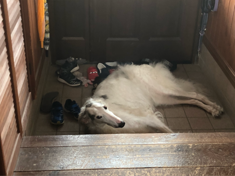 食品庫前をウロウロするバジル