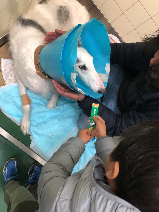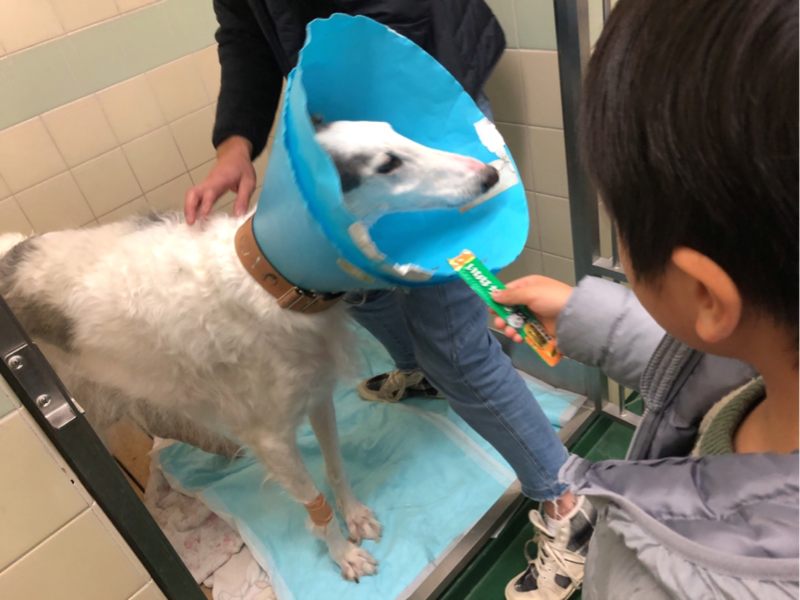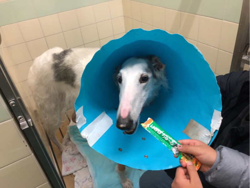 フードと鶏胸肉のボイルとオヤツを持って、面会に行ってきました