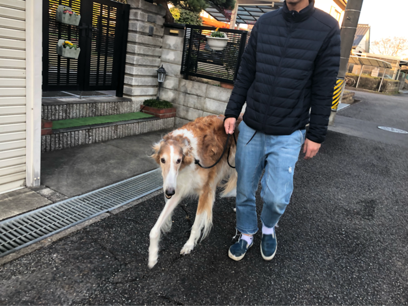 途中、散歩中の柴犬