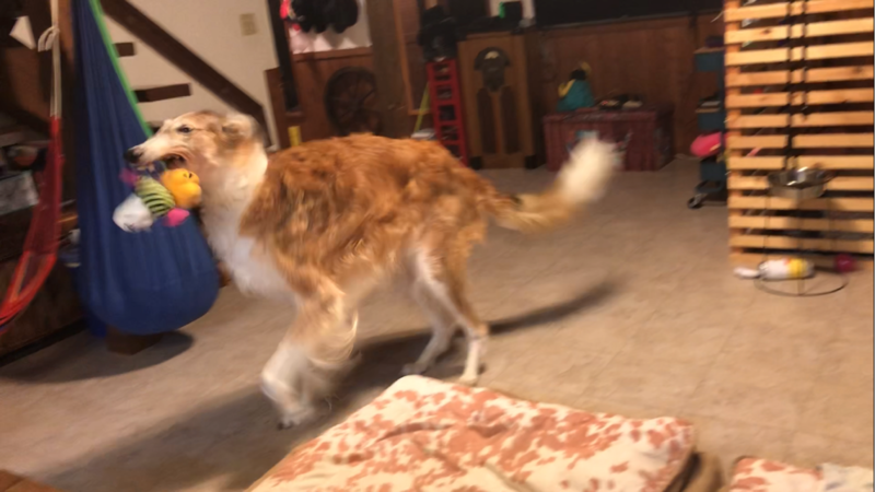一人でオモチャを振り回して遊んでました