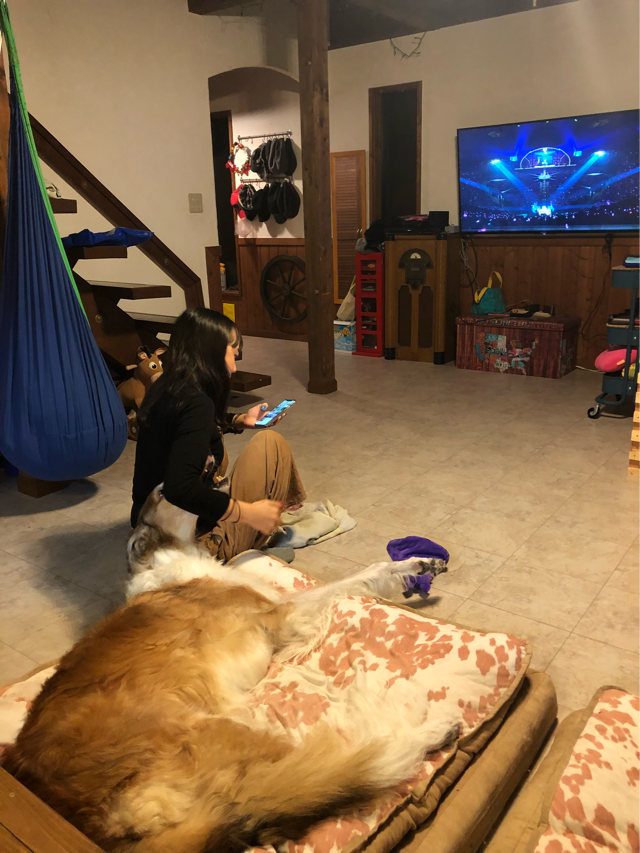 に撫でてもらってるブッチ兄さん