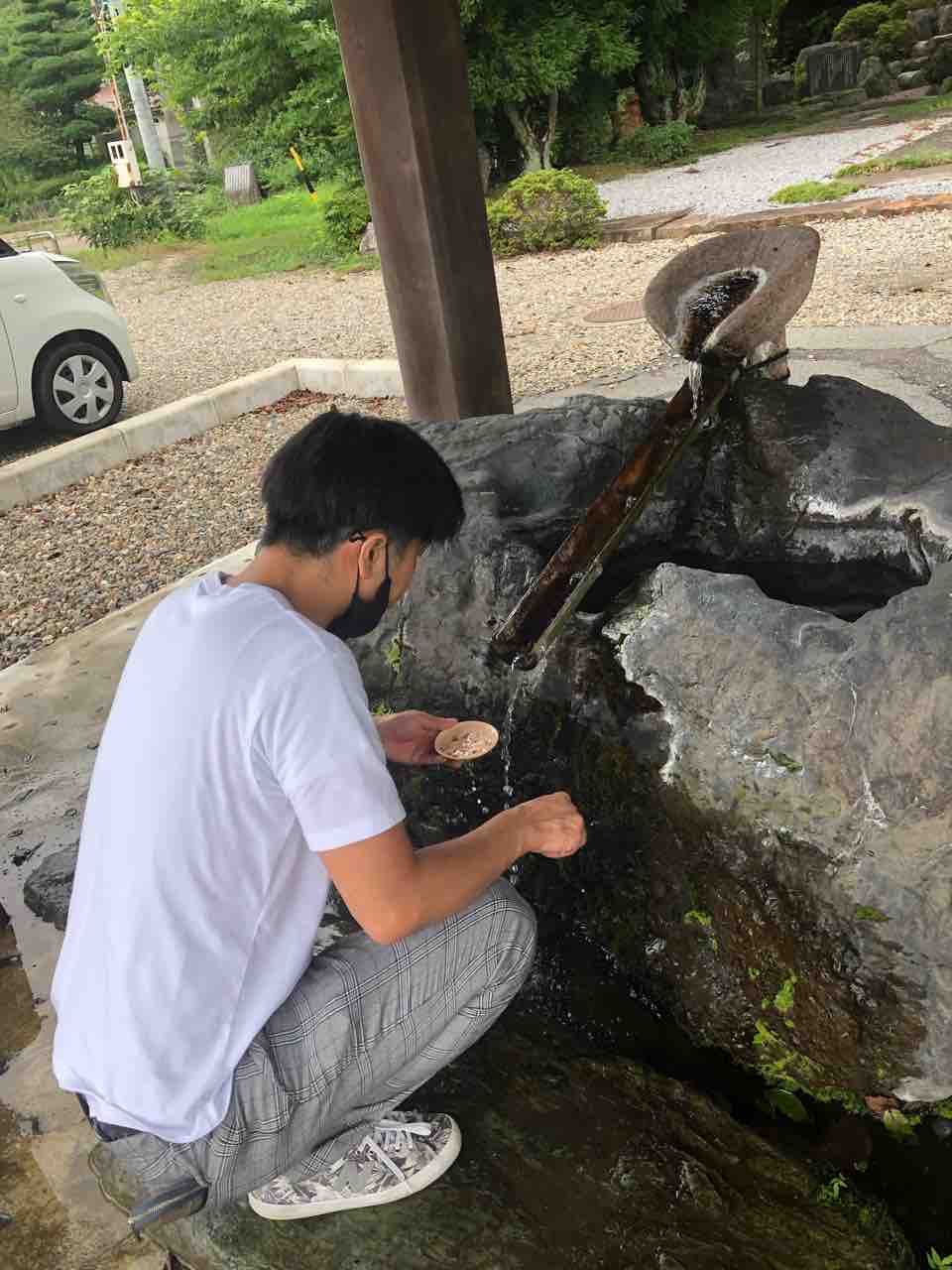 「からわけ」に汲んだ神水を出来るだけこぼさないように…参道を進み…