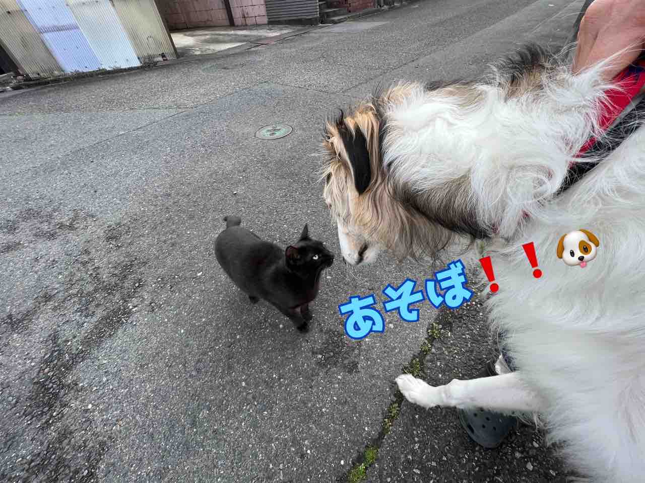 友達になれると思ったのか、小型犬に「遊ぼ!」って誘うみたいに急にテンション