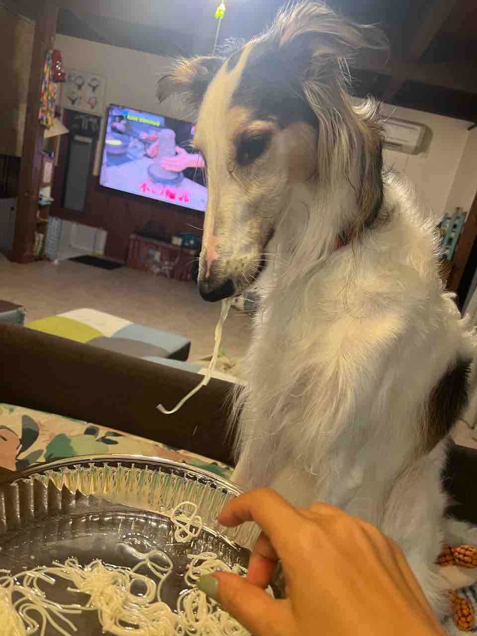 @ayumi.beny #CapCut #ボルゾイ #borzoi #超大型犬 #超大型犬のいる暮らし #犬のいる生活 #ボルゾイのいる暮らし #素麺 #大好き#夏 ♬ Animal's daily life. Daily songs in a slightly blurred atmosphere - Sumochi