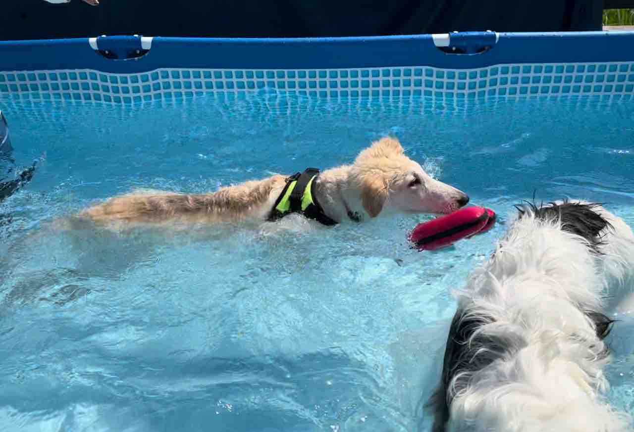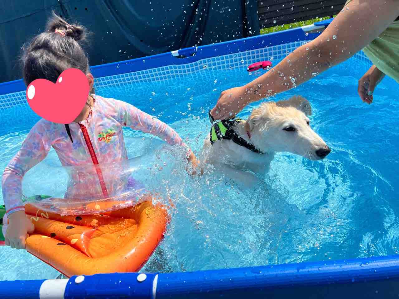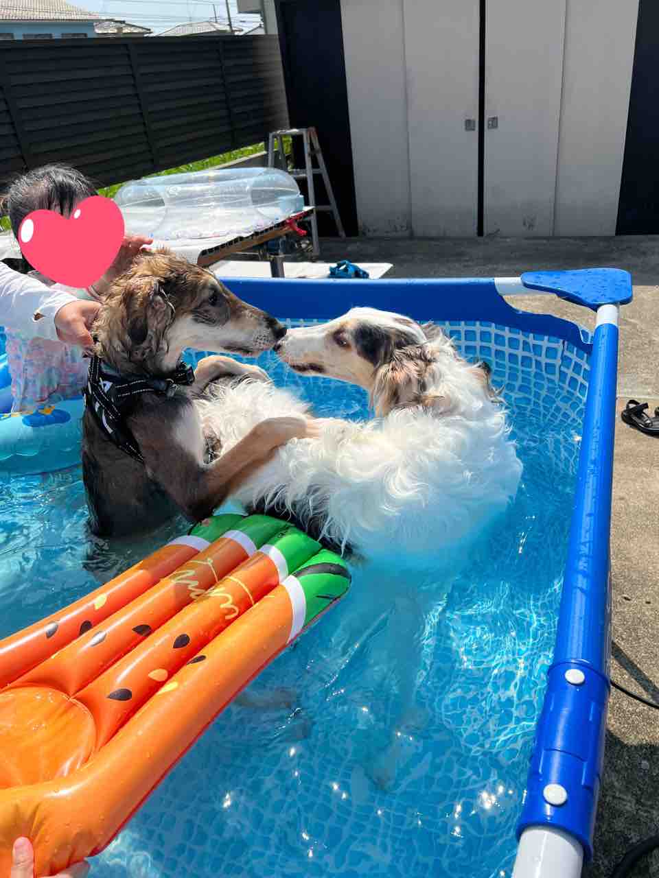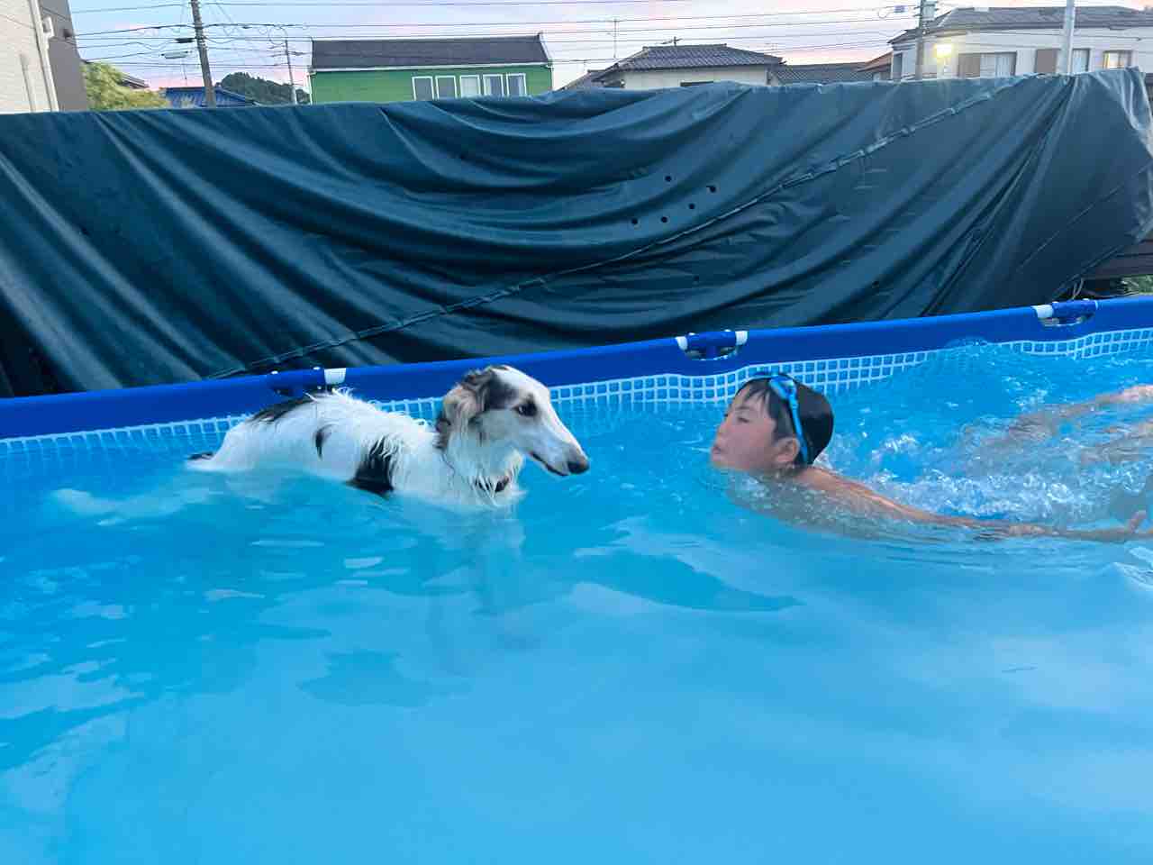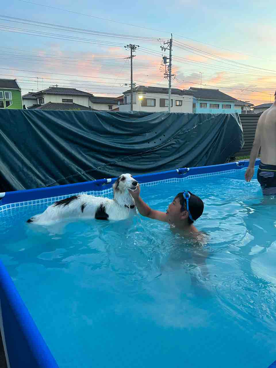 午後から兄ちゃんの友達3人来て、お庭プール遊びしてたけどターボ