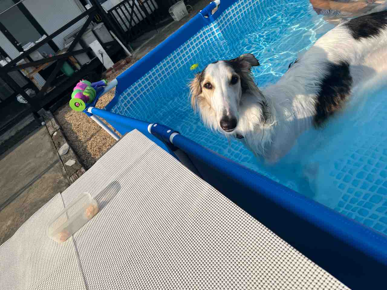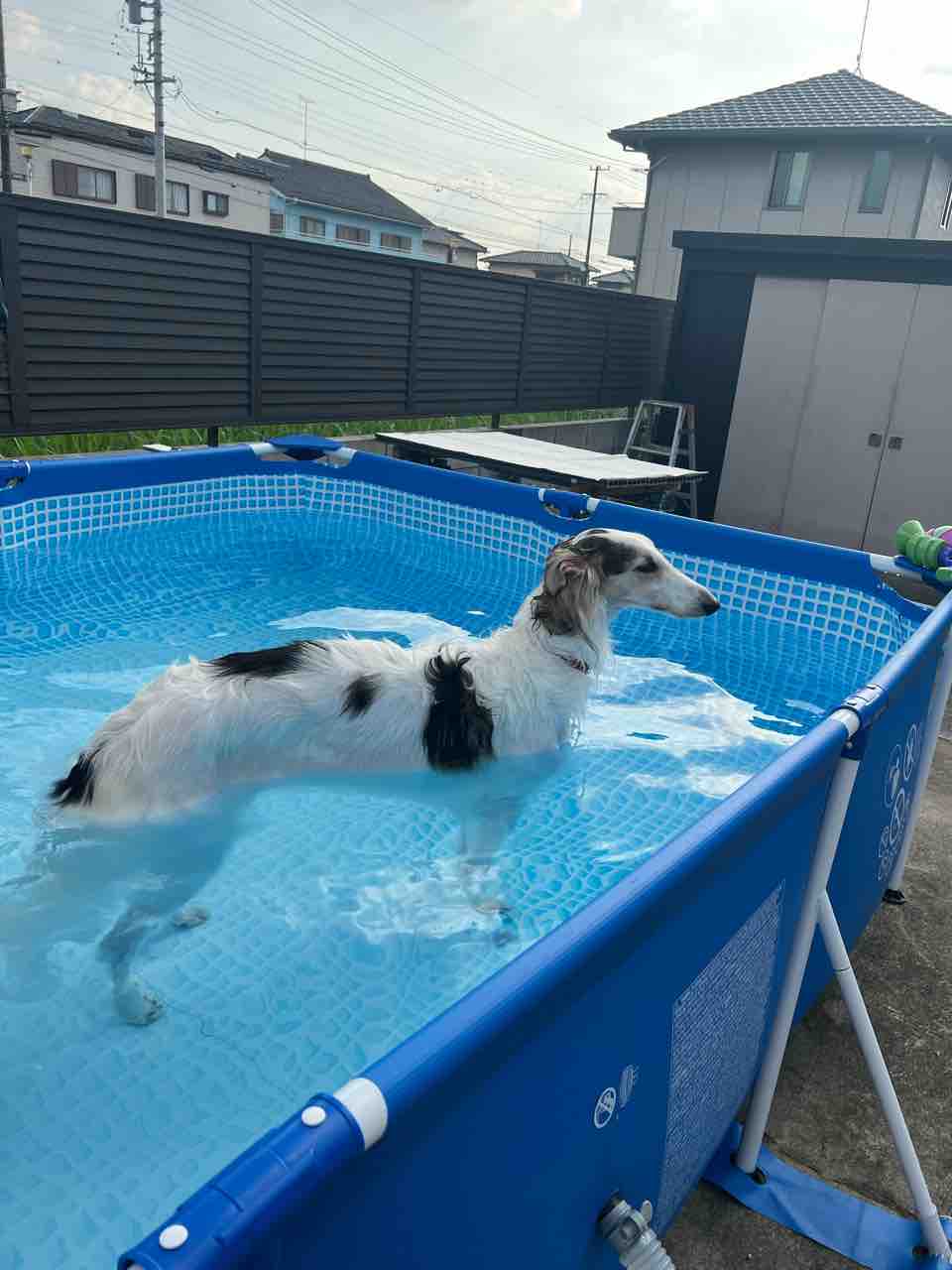 遊び明けの庭プール┌(; ̄◇ ̄)┘