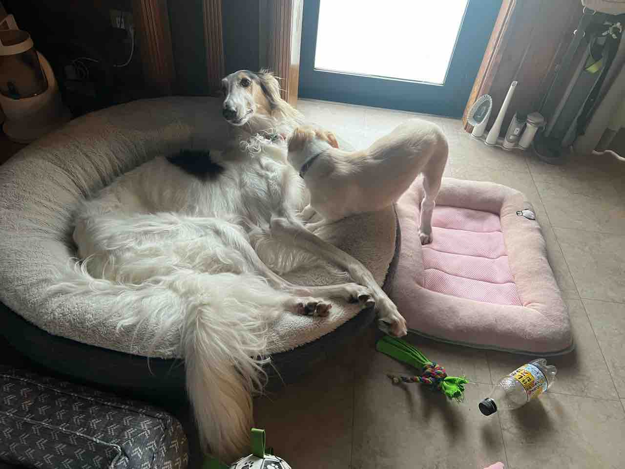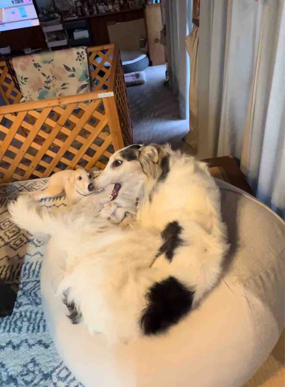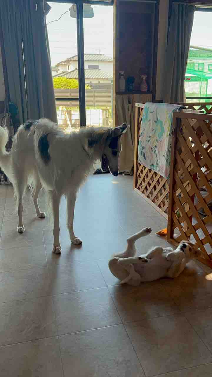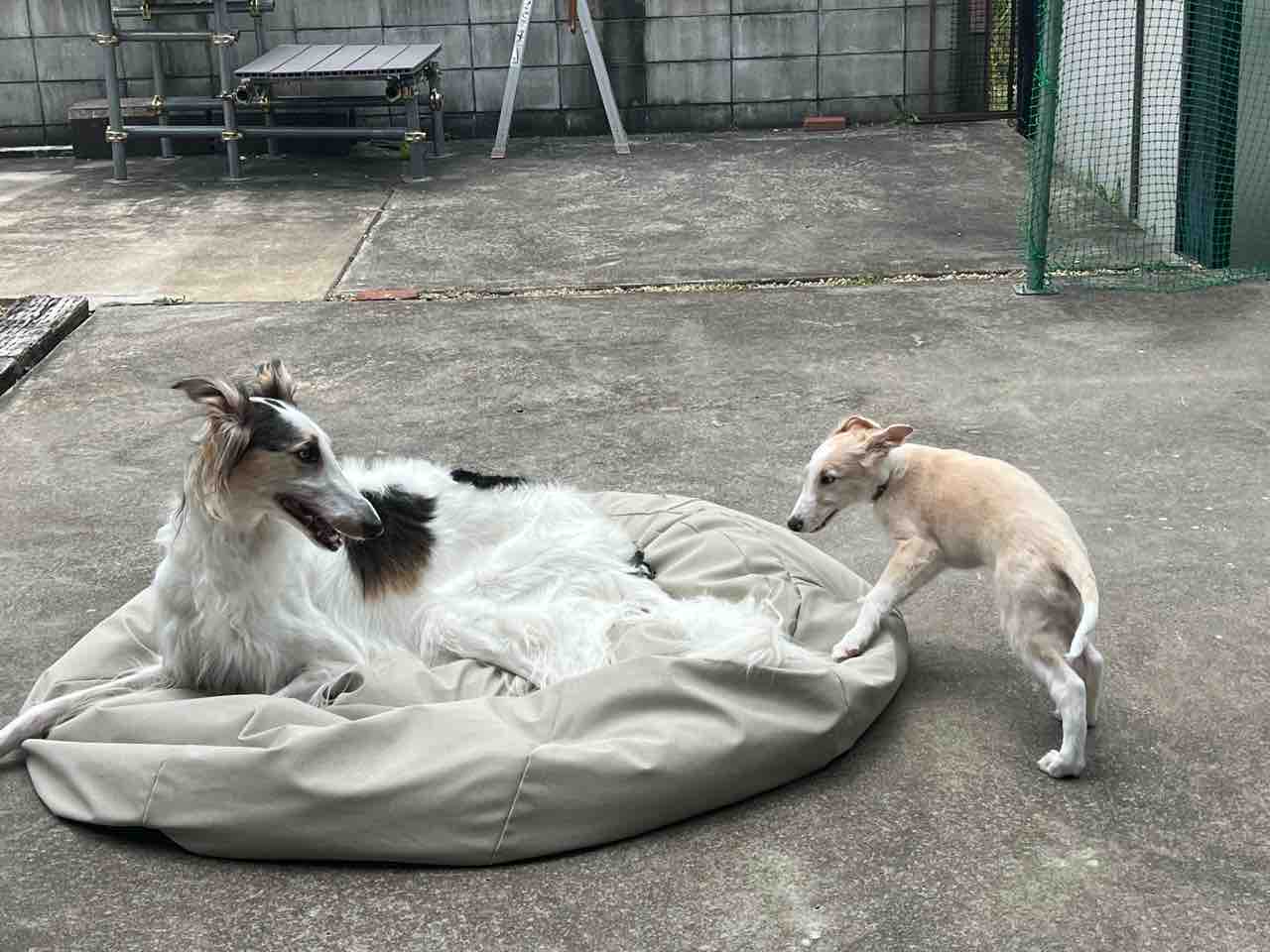 仲良く遊ぶ時もあるけど、ボルゾイ犬