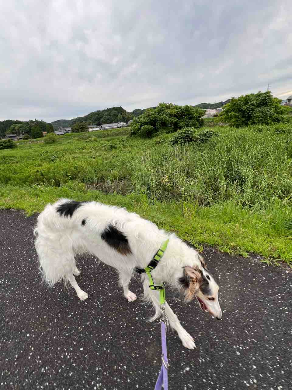は外で地面濡れてなくてもお尻をつけることをあまりしない神経質タイプです。