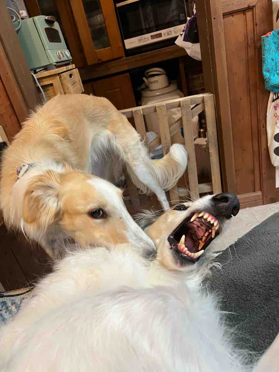 ちょっと留守してる間に、キッチン上に置いてあった新品のドレッシングを持ち出し、ガジガジしてほぼ1本分こぼしました