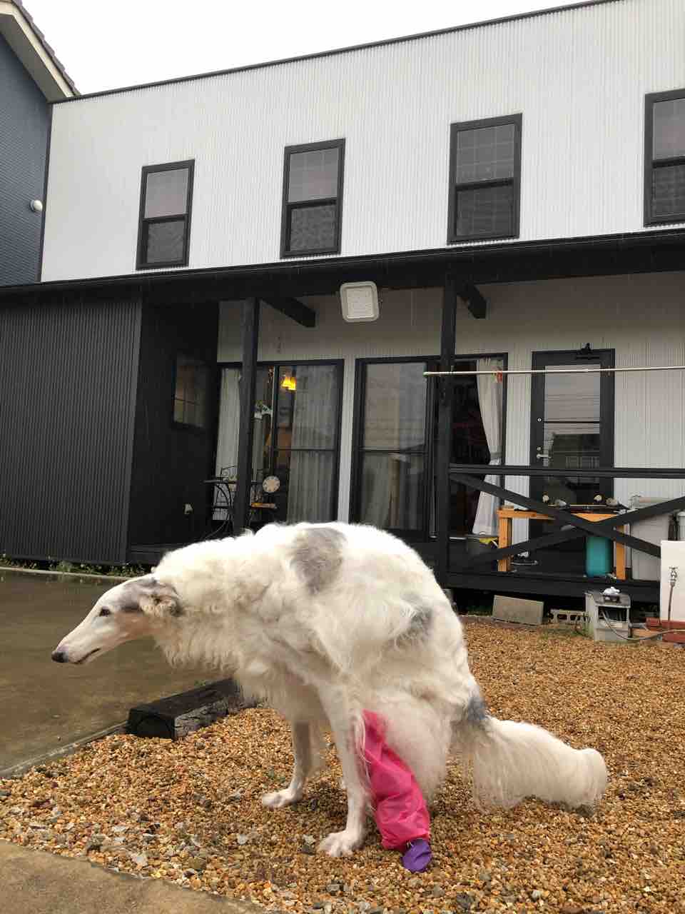 ちょっと気になるみたいだけど、今のところお利口に履いてくれてます