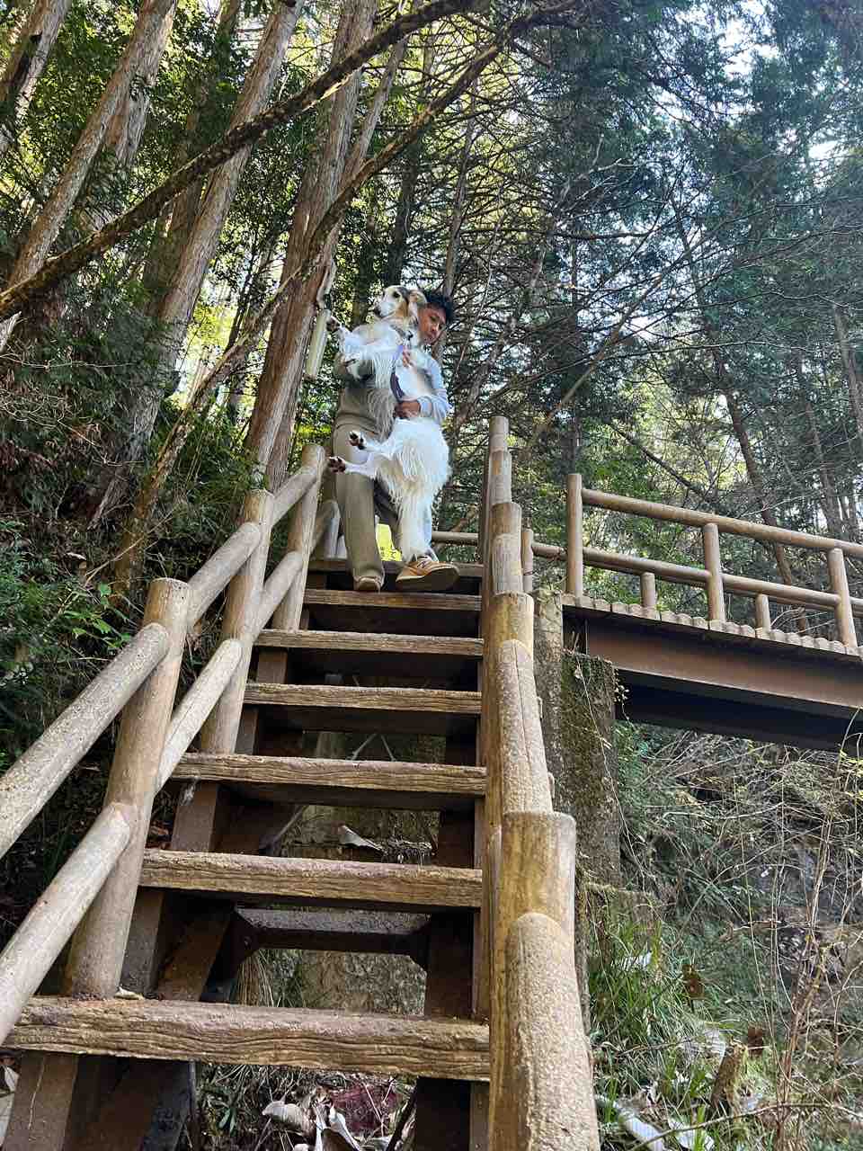 固まってしまったので、父ちゃんが抱っこして下りてきました