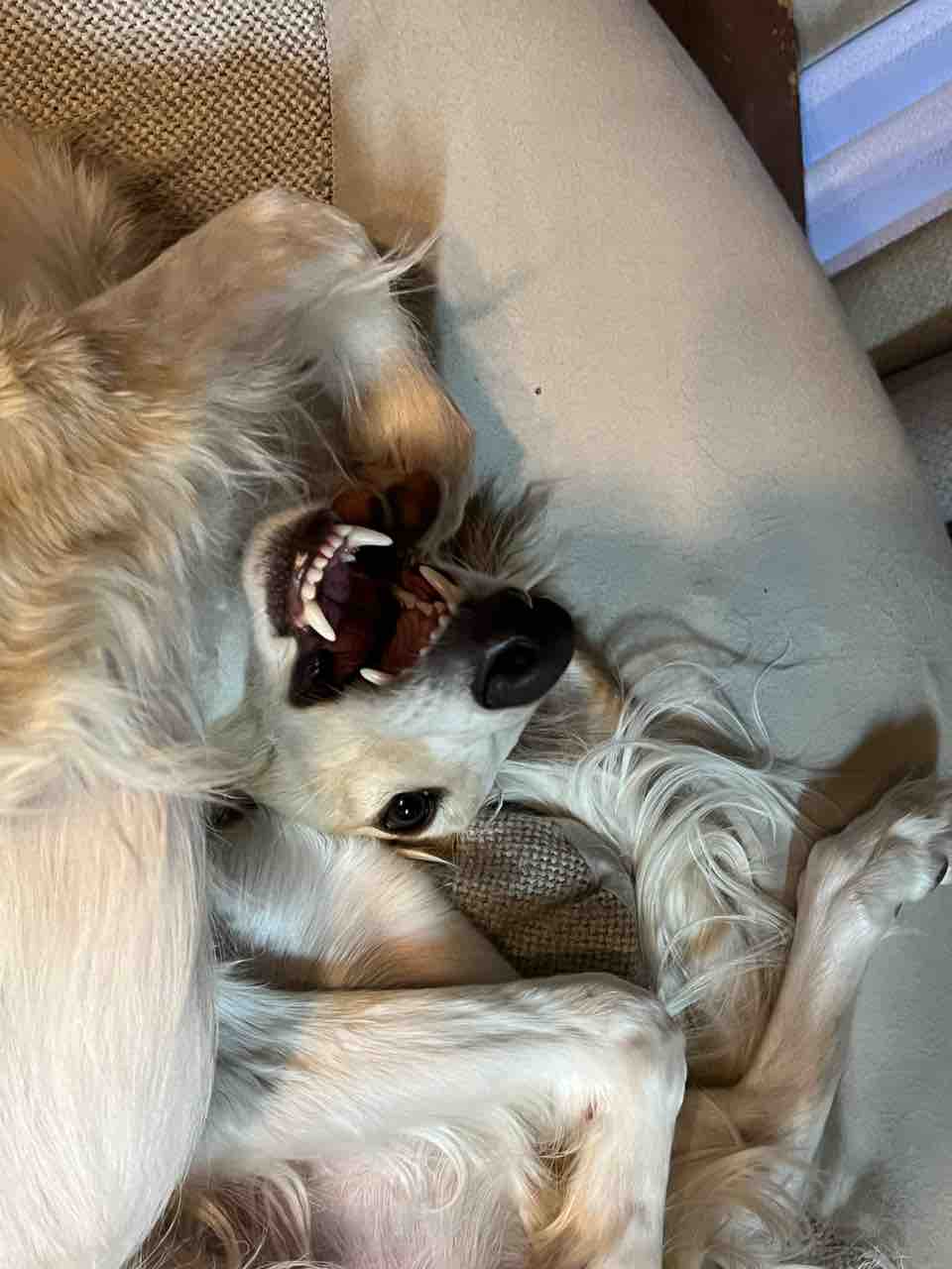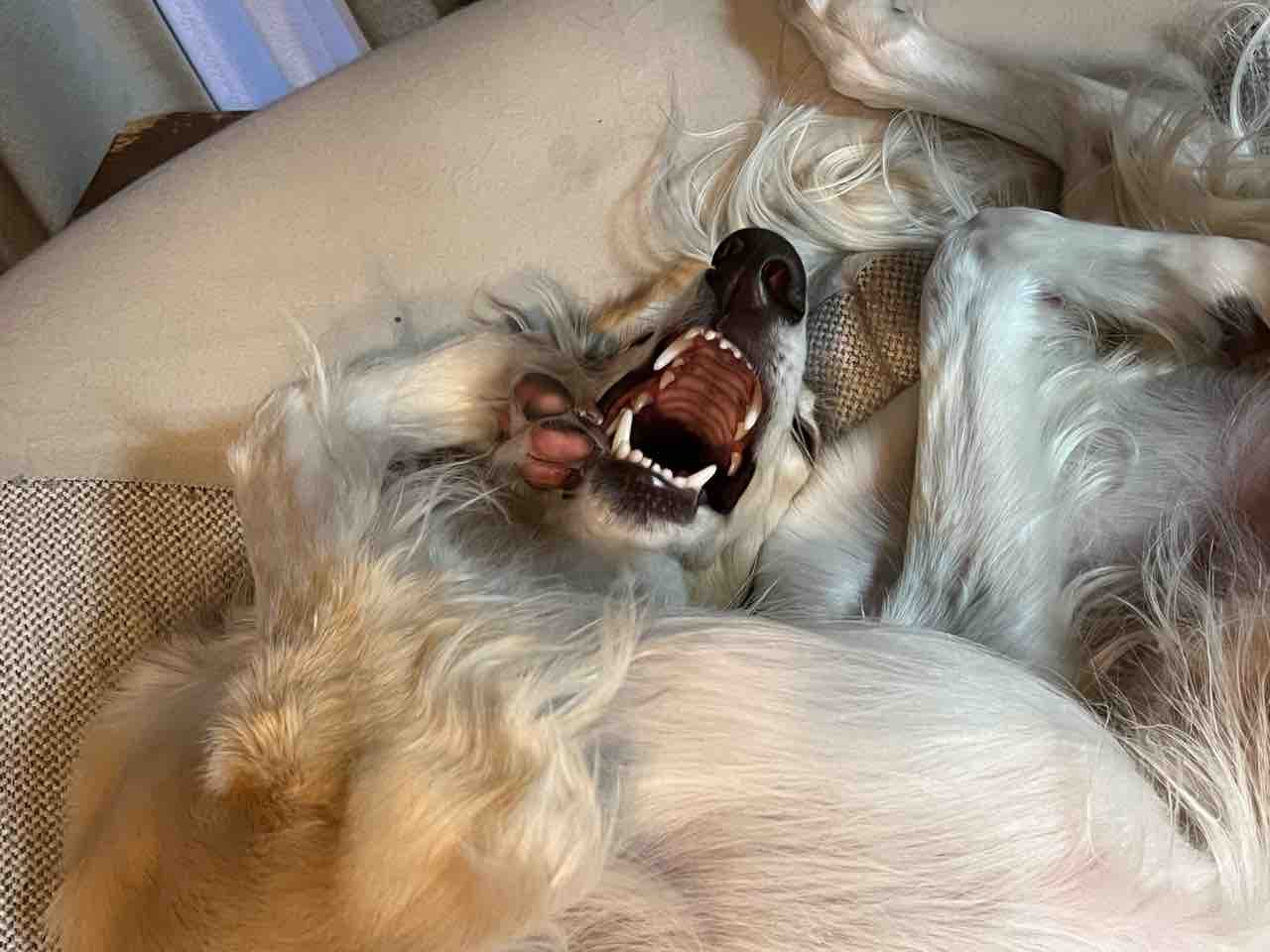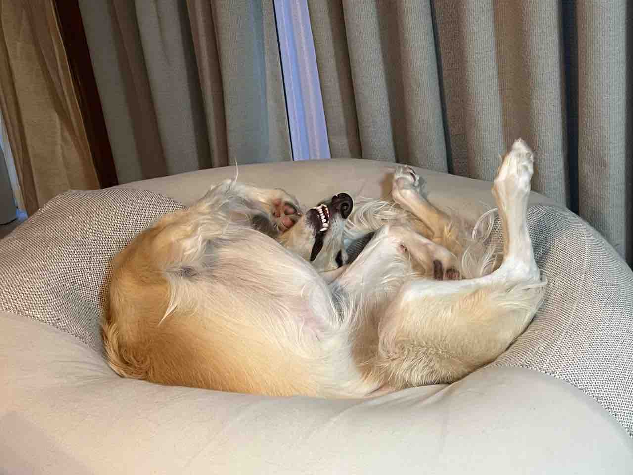 ビーズクッションの上で寛ぐジン