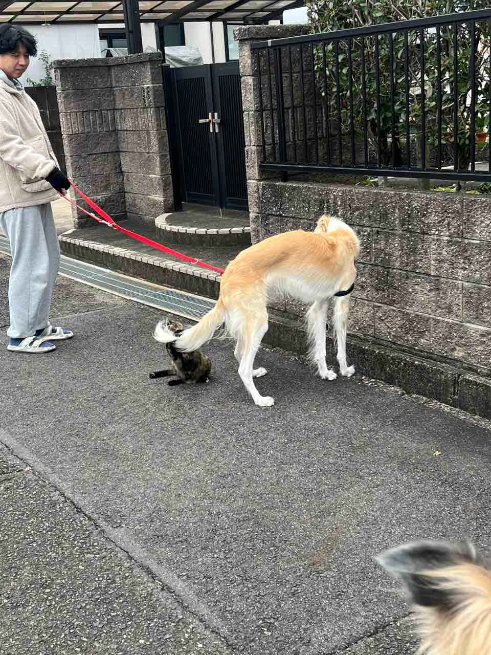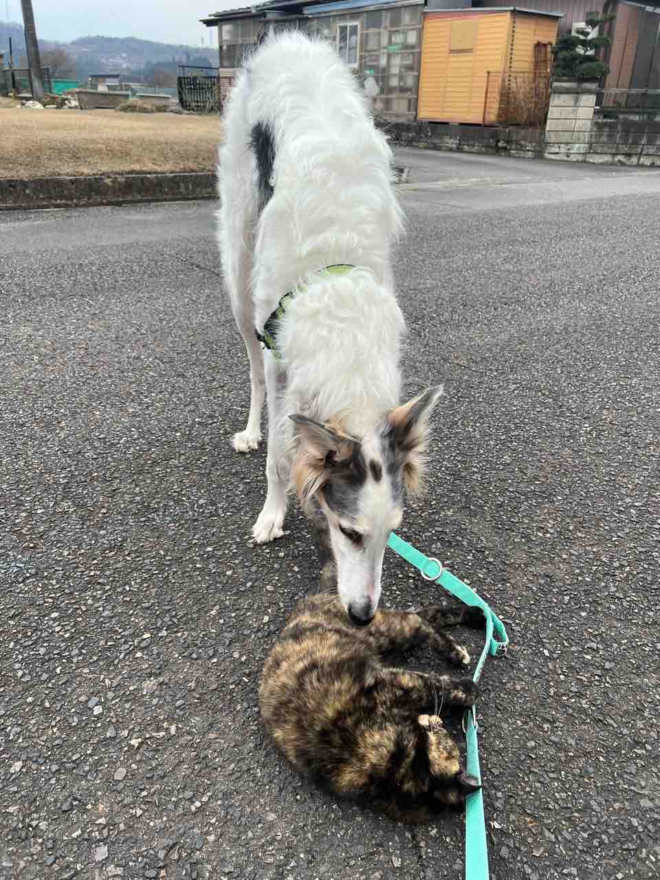 リードで遊ぶフレンドリー猫ちゃん