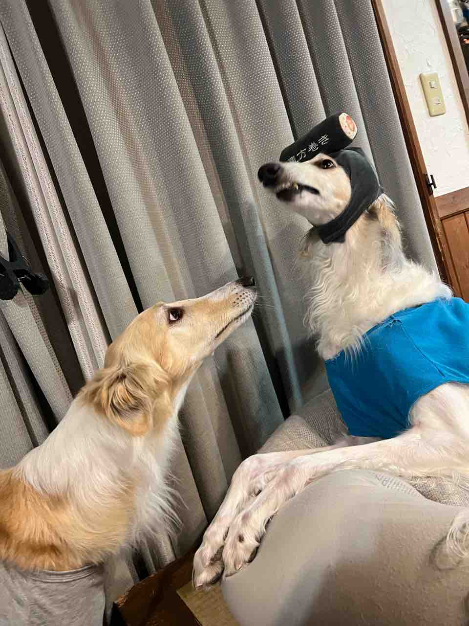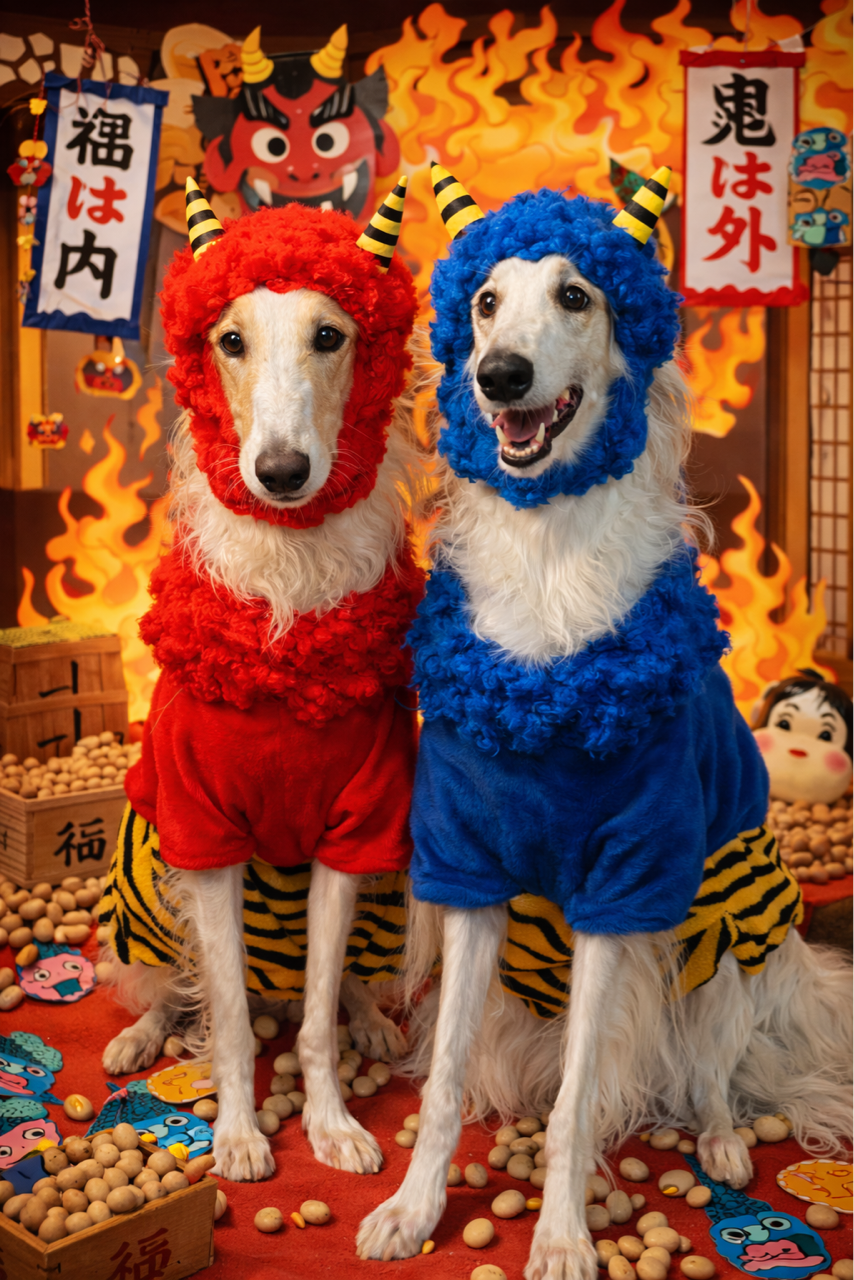 2026年02月03日 節分の日。 2月3日の今日は。節分の日〜ChatGPTで青鬼と赤鬼にしてもらった午後から買い物へ行っていつも通り夕方散歩電車の音にビビる二頭夕食は、もちろん恵方巻き味見しないで犬用恵方巻きはコレ今年は南南東だってさ。オレ関係ないけどターボにも恵方巻き被せてみたよ恵方巻き食べるオレの恵方巻き(←頭)食うなよーこの恵方巻きは俺のだブログランキングに参加しています↓鬼は〜外福は〜内ポチッとにほんブログ村 「ターボ&ジン」カテゴリの最新記事 < 前の記事次の記事 > コメント コメントフォーム 名前 コメント 記事の評価 リセット リセット 顔 星 情報を記憶 コメントを投稿する
