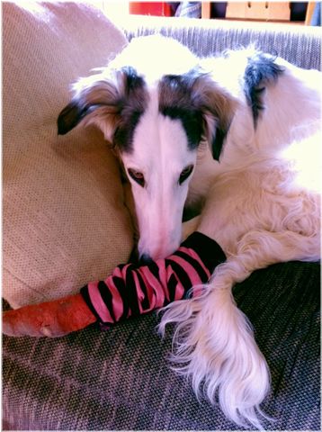 包帯テーピングをひたすらペロペロ舐めるので