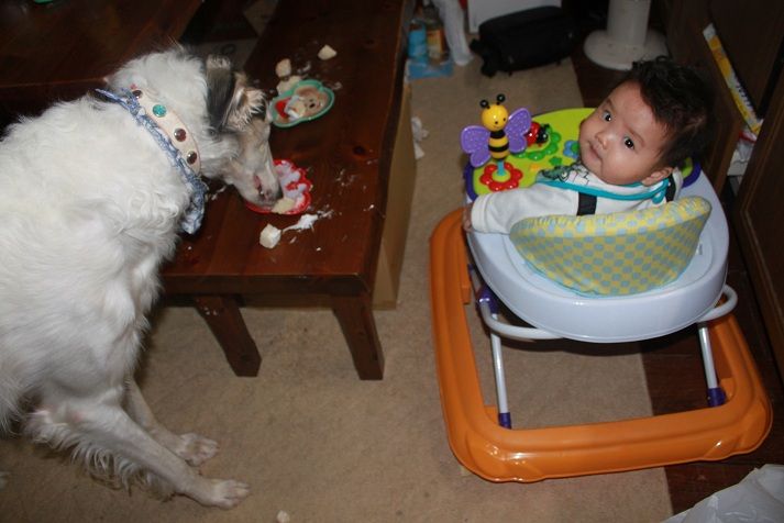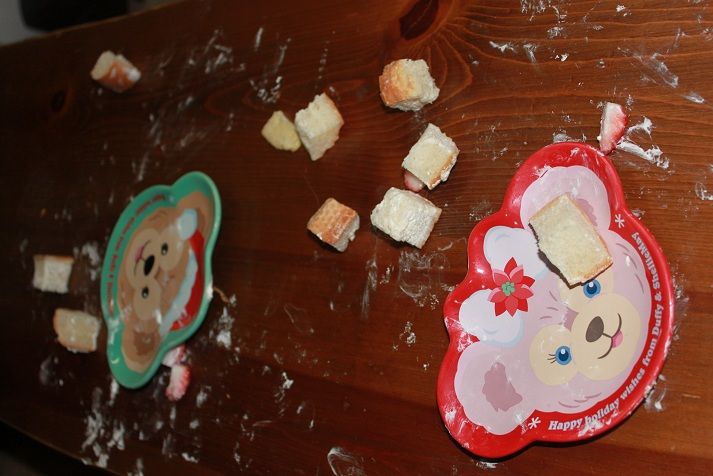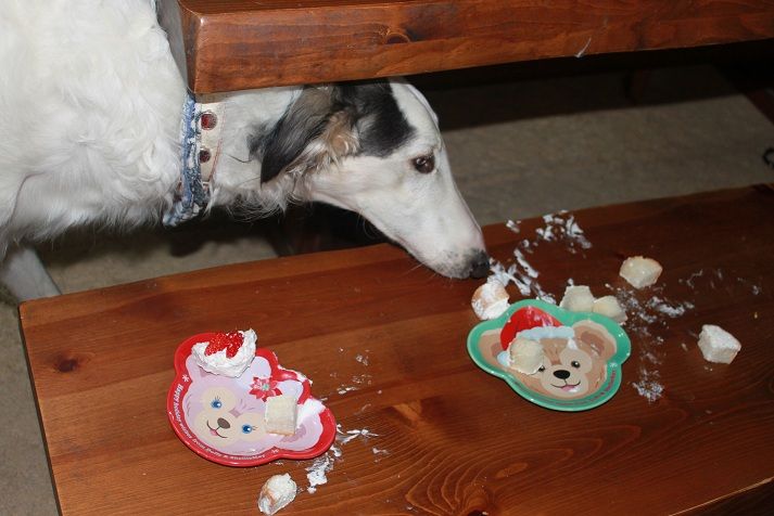 しかも、今年は犬用にスポンジ作るのめんどくさかったので、人間用のフランスパン。