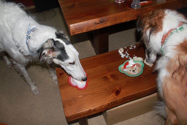 超食いしん坊のワンコ達なので、喜んで食べてくれました♪生クリームを(⌒-⌒; )