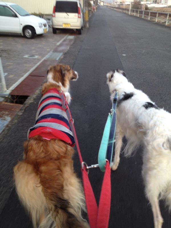 2012年01月10日 ママとお散歩♪ おはようございまーす 最近、散歩サボりまくりのパパにイラっっとモヤっっと。 昨日の夜もだけど~今日の朝も、私が行ってきました (息子くんはまだ寝てたので、娘が学校行く前に20分だけね) ブッチはあちこちニオイを嗅ぐ癖があり遅く、バジルはスタスタ先に行こうとして早いので 2頭繋げておくとお互い引っ張り合って丁度いい ネコちゃん発見時の猛ダッシュは超危険?? どちらか1頭が発見しちゃった時も、繋げておくと丁度いいね ↑昨日の息子くん&ブッチ&バジル ブログランキングに参加中です♪ ↓↓下の画像を、1クリック!!!!! よろしくお願いします m(. .)m にほんブログ村 にほんブログ村 「ボルゾイ(ブッチ&バジル)」カテゴリの最新記事 < 前の記事次の記事 > コメント コメントフォーム 名前 コメント 記事の評価 リセット リセット 顔 星 情報を記憶 コメントを投稿する