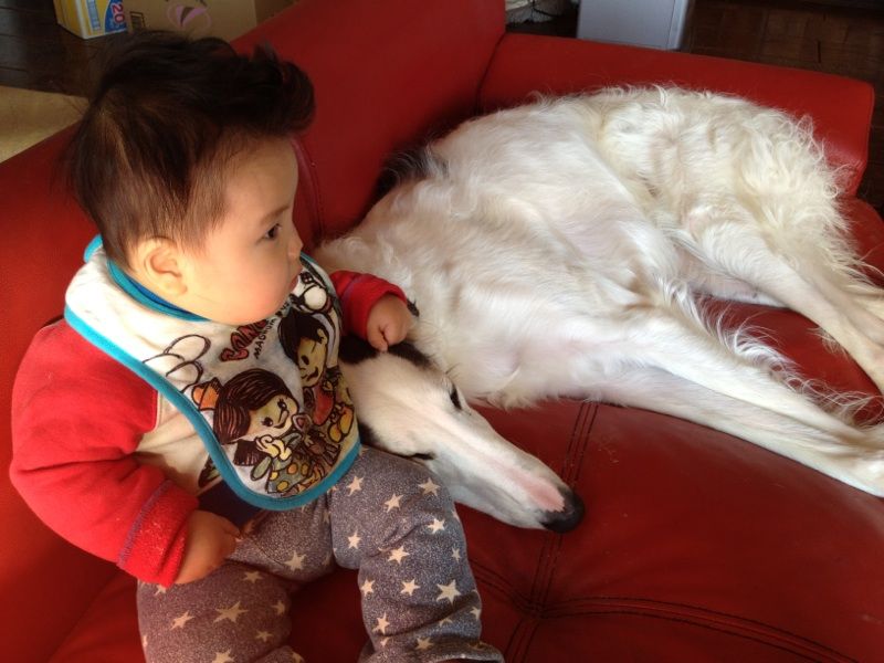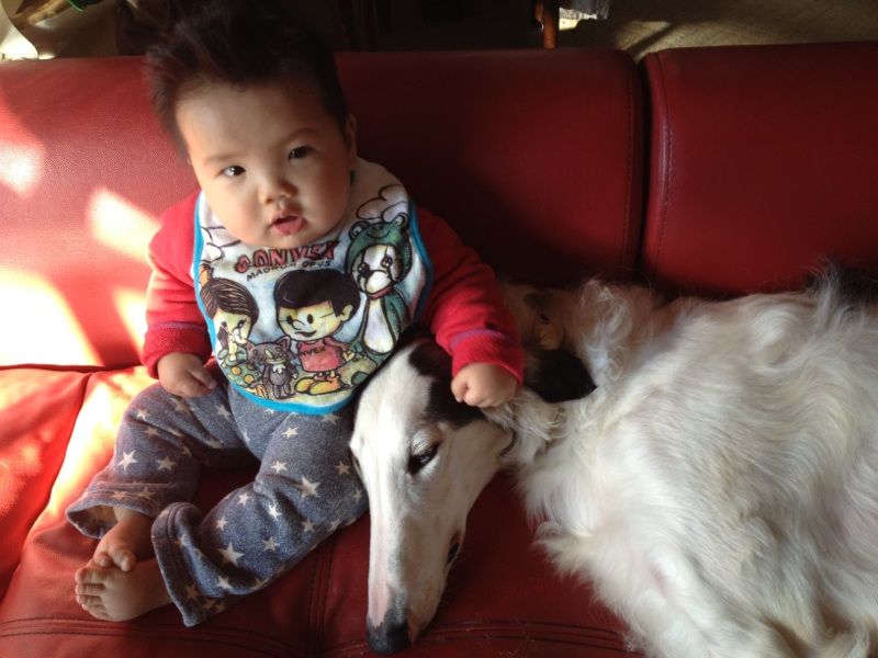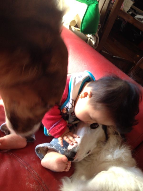 ブッチ&バジルは子守上手だし、息子くんはブッチ&バジルを遊んであげてるし(?)