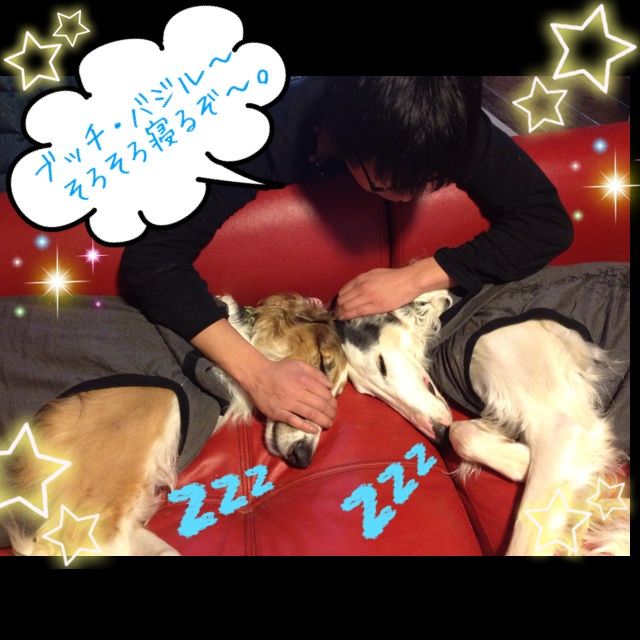 2012年03月07日 ゴッツンお寝んね???zzZ 今日の夜~ ドタバタ遊んだ後、仲良くゴッツン頭合わせて寝てました ブッチとバジル頭の大きさぜんぜん違うね~ さてさて。寝ましょ 明日、晴れたらポチ森連れてってあげるね(^-^)/ 今日は友達と久々のランチカラオケ 息子はMyアンパンマンマイク持参 ブログランキングに参加中です♪ ↓↓下の画像を、1クリック!!!!! よろしくお願いします m(. .)m にほんブログ村 にほんブログ村 「ボルゾイ(ブッチ&バジル)」カテゴリの最新記事 < 前の記事次の記事 > コメント コメントフォーム 名前 コメント 記事の評価 リセット リセット 顔 星 情報を記憶 コメントを投稿する