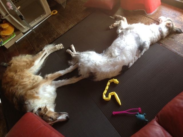 今日一日ゴロゴロ寝てたブッチの方が眠そうです